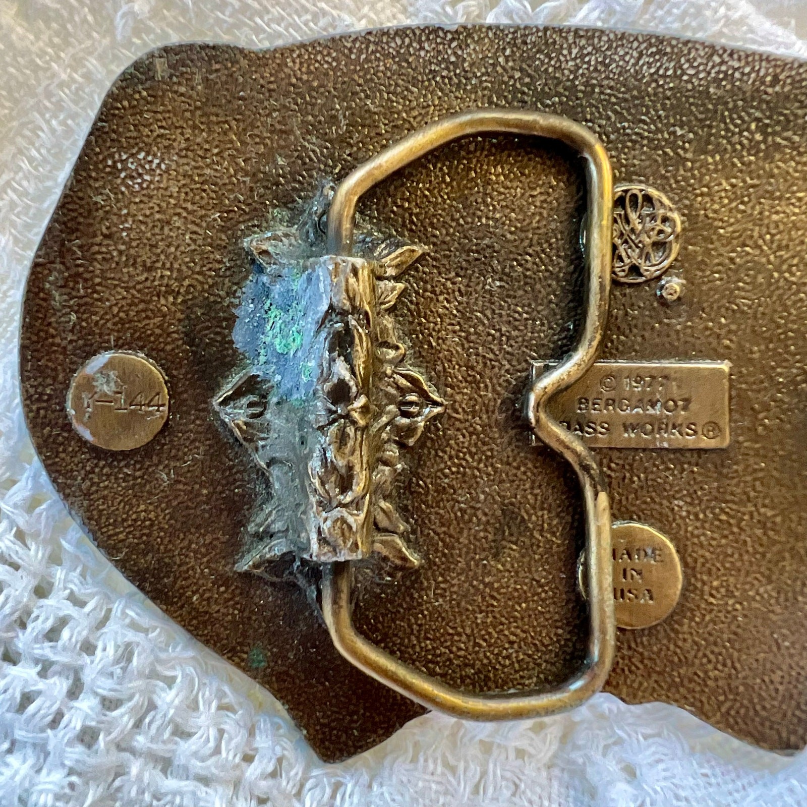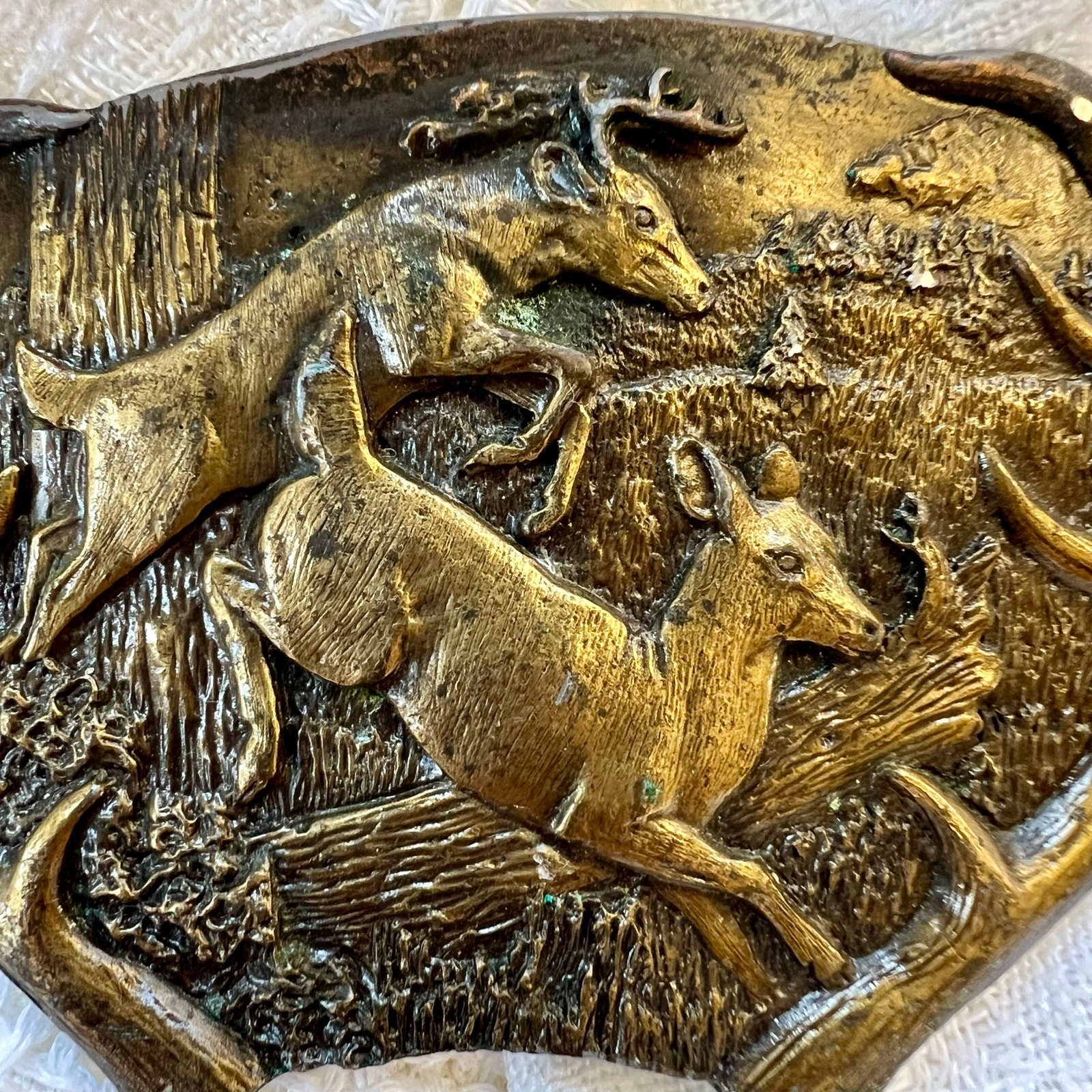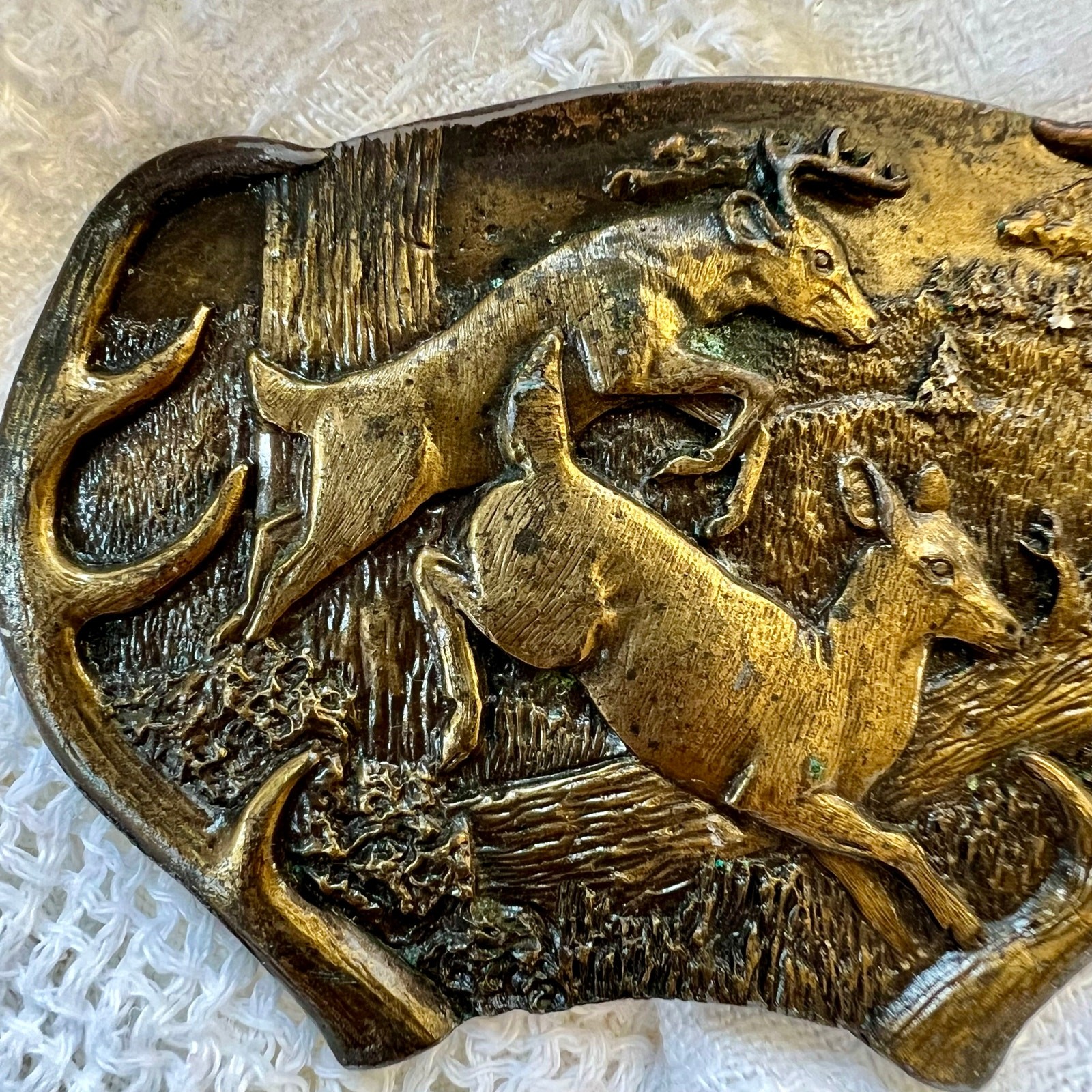• Vintage 1970s Bergamot Brass Works Deer Belt Buckle Western made in USA