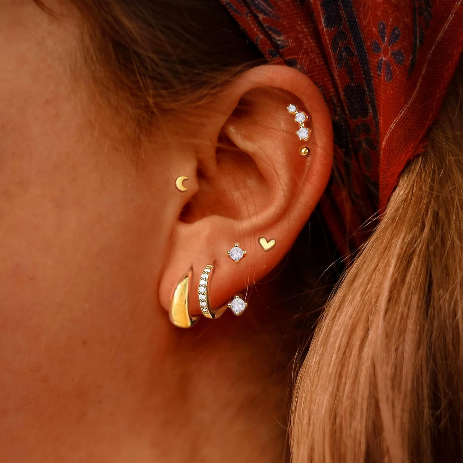 7 Pairs 14K Gold Plated Huggie Hoop Stud Earrings for Women, Twisted CZ Chunky H