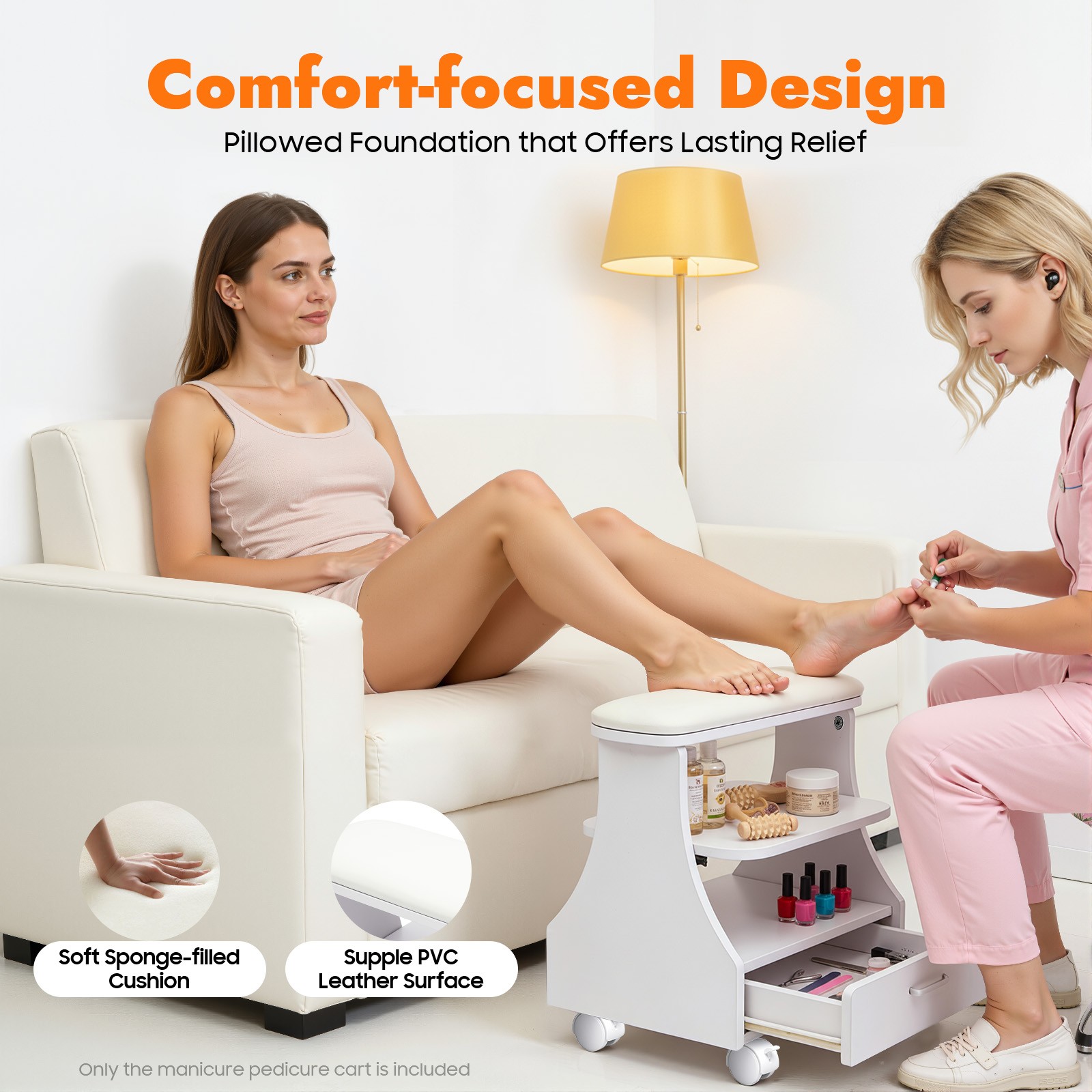 Portable Esthetician Trolley Cart Salon Nail Foot Trolley Cart 52 41 55cm White