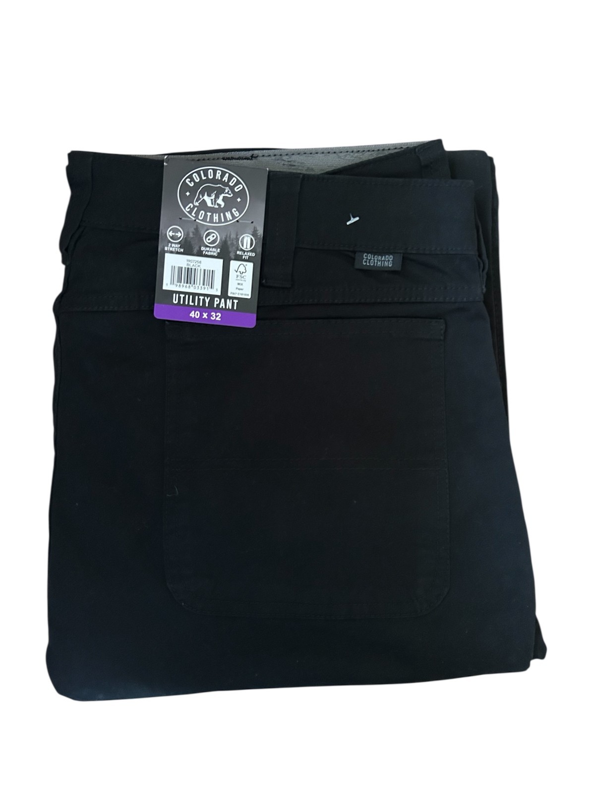 Colorado Clothing Men's Utility Pant Relaxed Fit Stretch Canvas Black Size 40x32