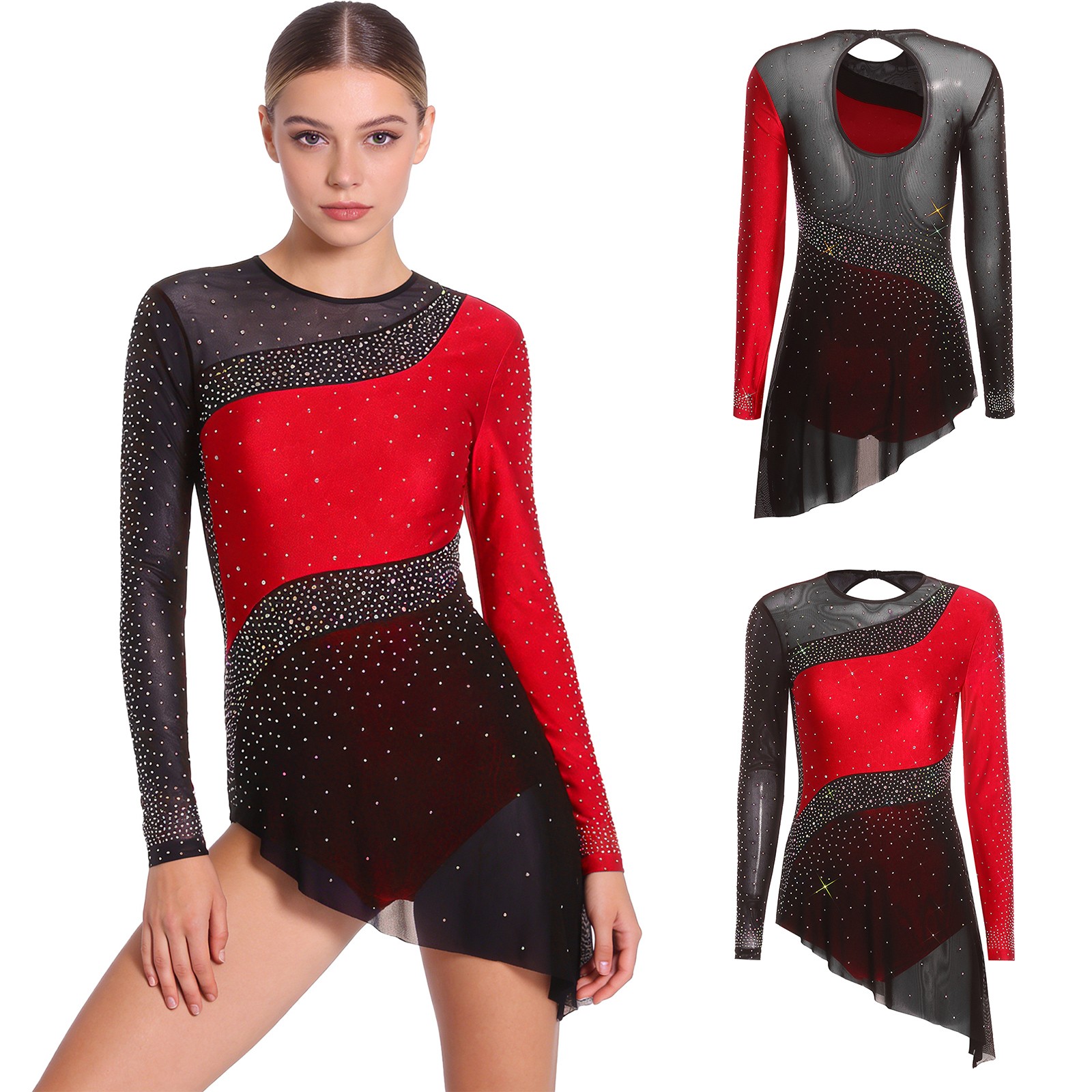 Womens Figure Skating Bodysuit Dress Ballet Lyrical Dance Leotard Roller Skating