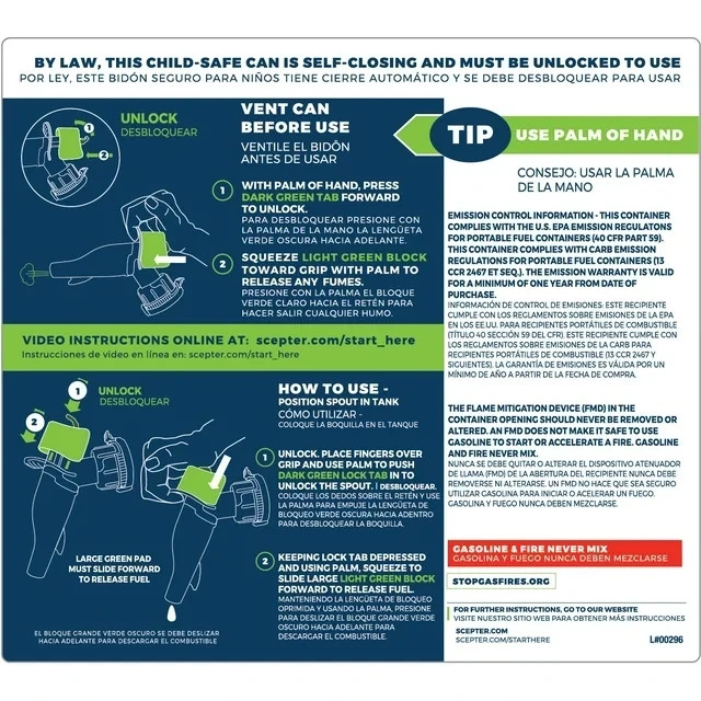 Scepter USA 2-Gallon Plastic Gasoline Can 2-gpm Manual