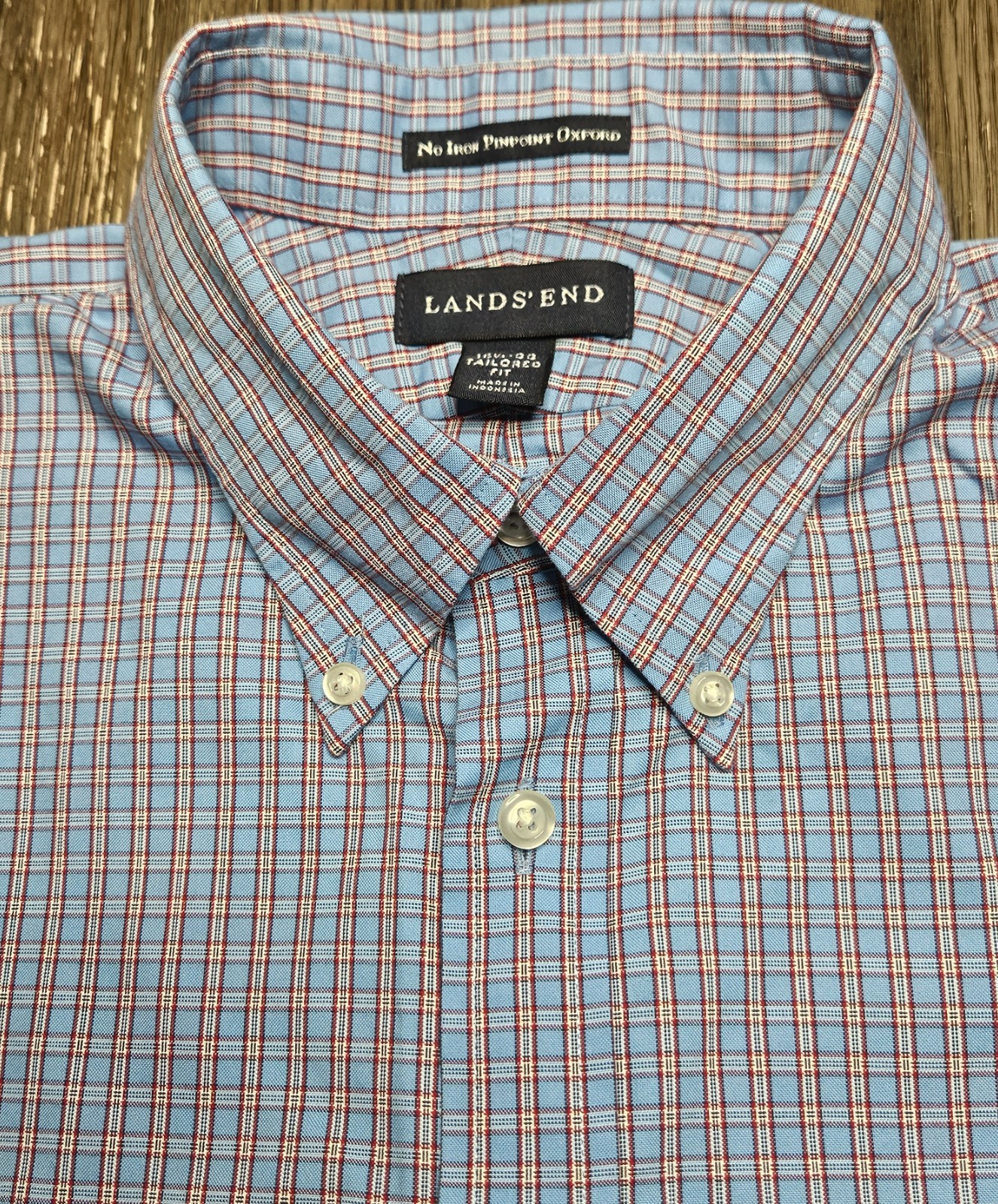 как выглядит Mens Lands End No Iron Pinpoint Oxford Plaid Button Up Shirt Size 17-33 фото