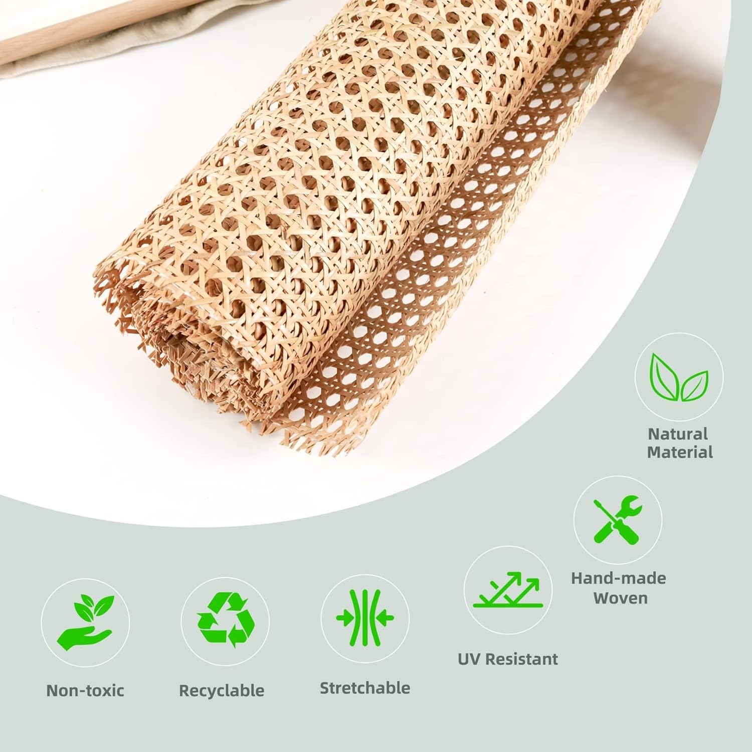 Cane Webbing,24 Width Natural Rattan Webbing Roll 3.3Ft Caning Material with 3/