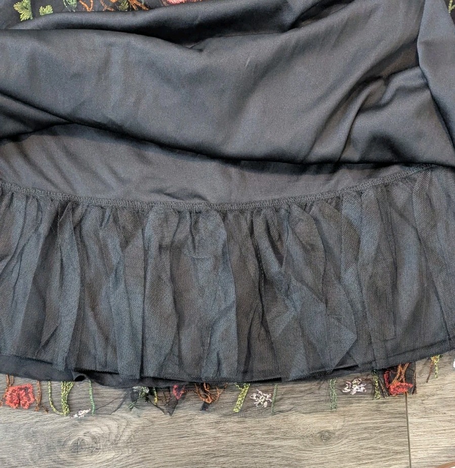 как выглядит Vtg Tulle Skirt 17 XL Floral Overlay Mini Tutu Black Embroidered Fairy Whimsy фото