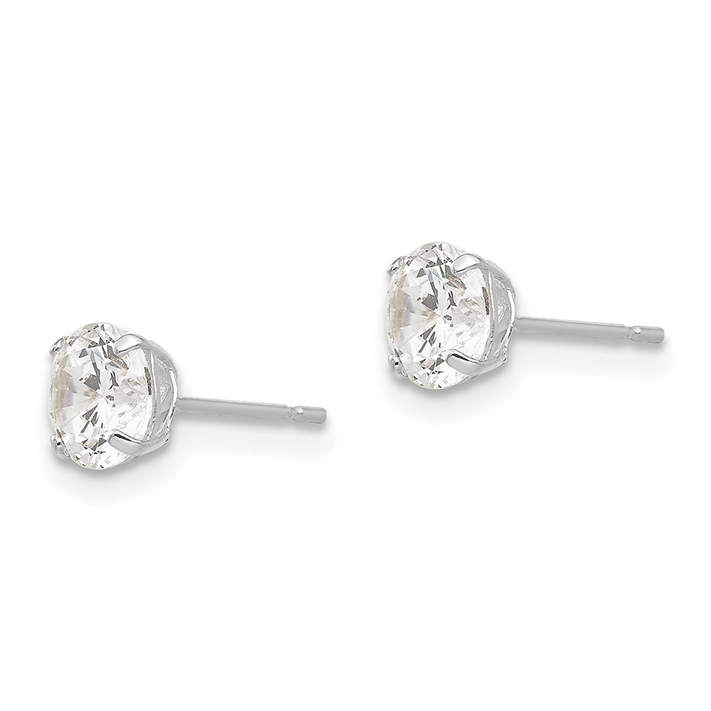 как выглядит 14k White Gold 5mm Round Cubic Zirconia Post Stud Earrings L-5 mm, W-5 mm фото