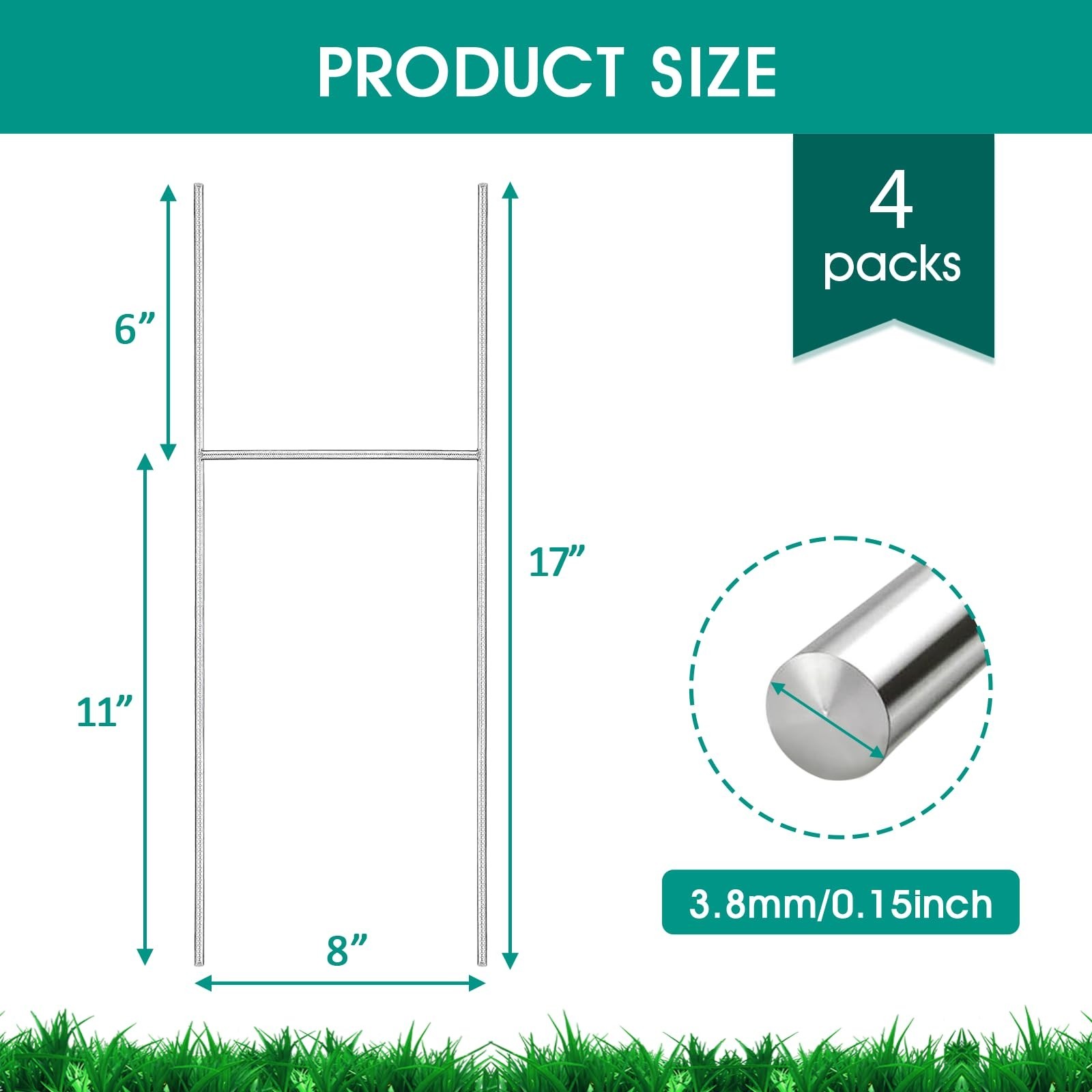 4 Pack Yard Sign Stakes Metal, 17X8 INCH Heavy Duty Yard Sign Stands, H Frame...
