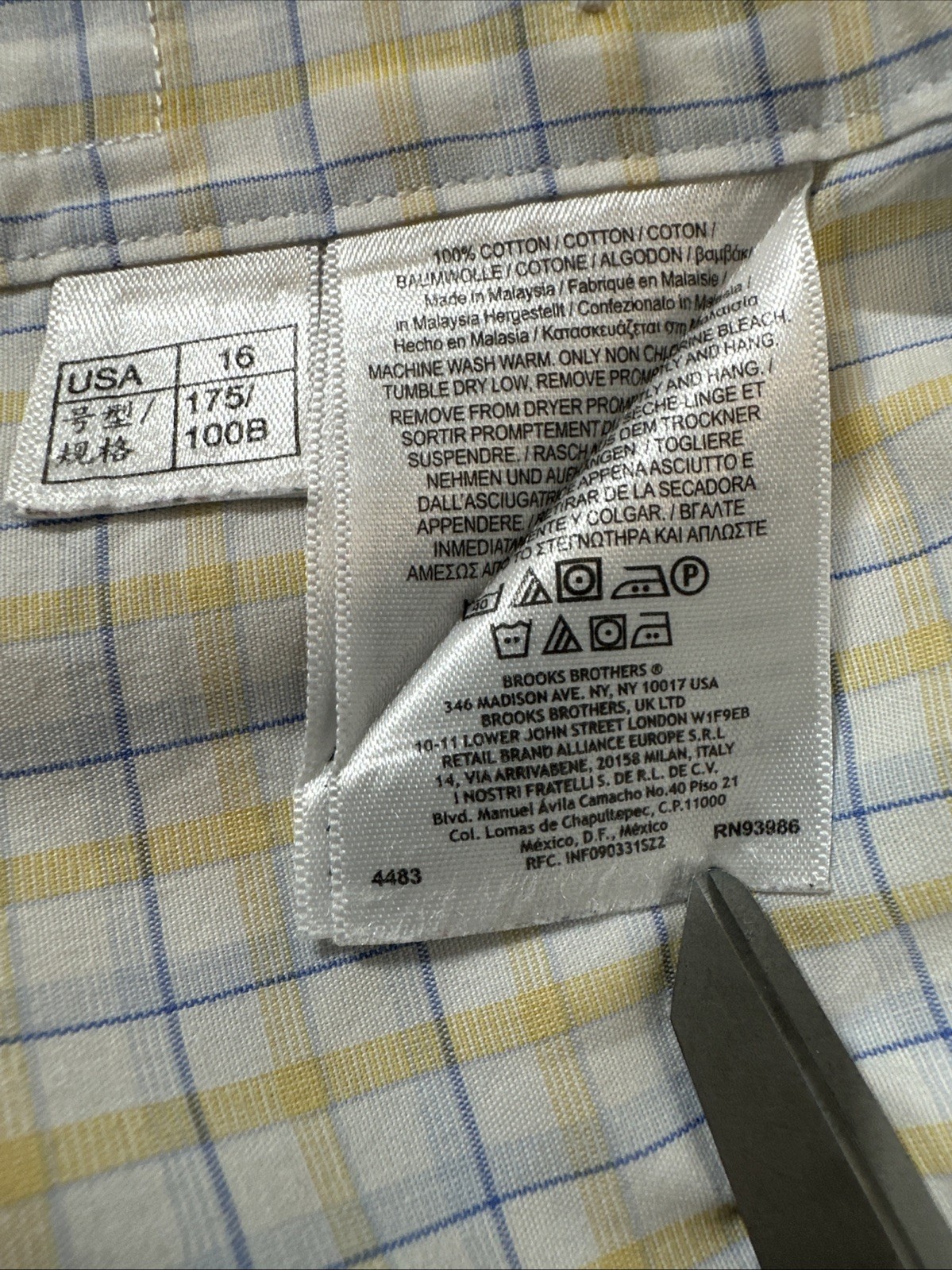 Brooks Brothers Extra Slim Fit Non iron 16/32 French Cuff Yellow/Blue Shirt