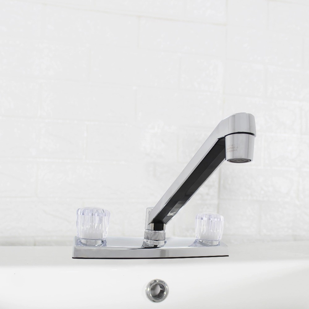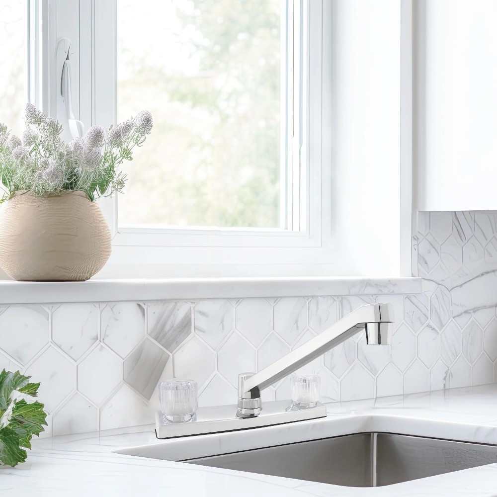 Kitchen Faucet with Acrylic Handles, Chrome Finish, Nonmetallic Body