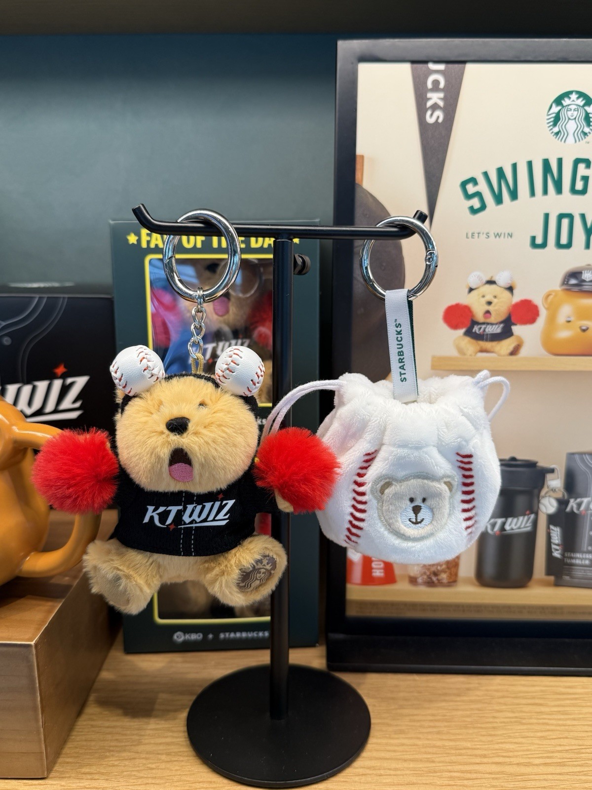 как выглядит Starbucks Korea 2026 KBO Bearista Baseball Drawstring Pouch Keychain фото