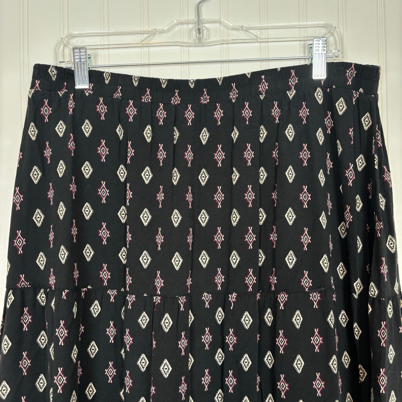 Boho Tiered Maxi Skirt L Black Flowy Indie Cottagecore Y2K Hippie Peasant Spring