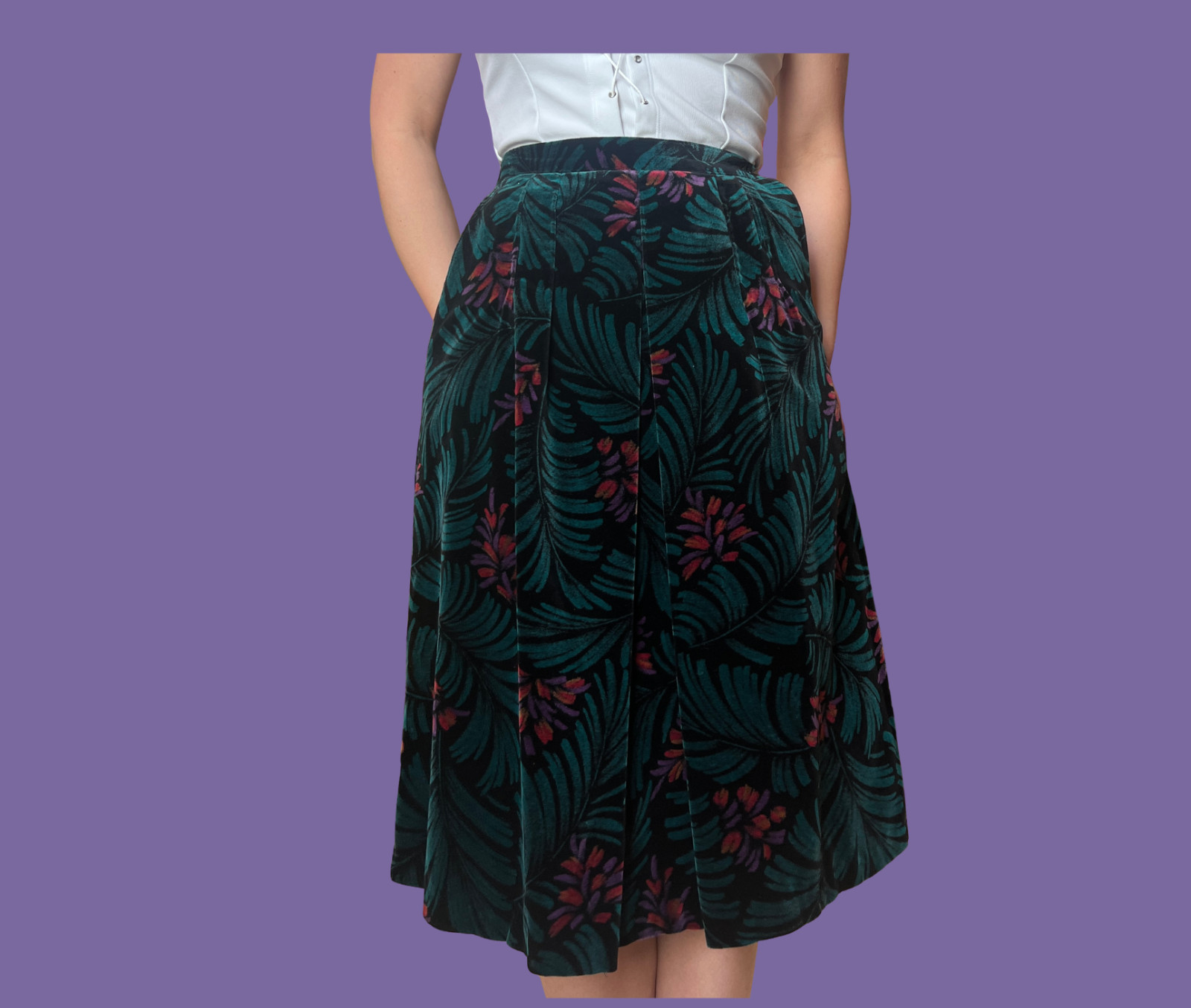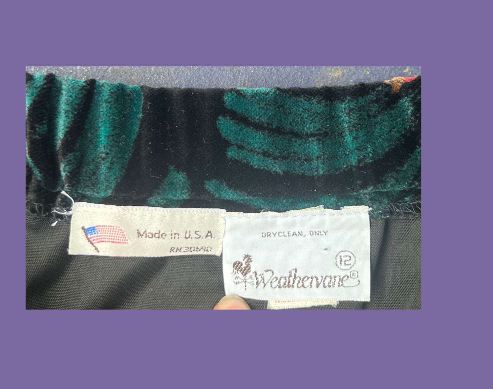 как выглядит VTG 1980s Union Made Dark Floral Long Velvet Skirt Whimsigoth Tropical Goth 12 фото
