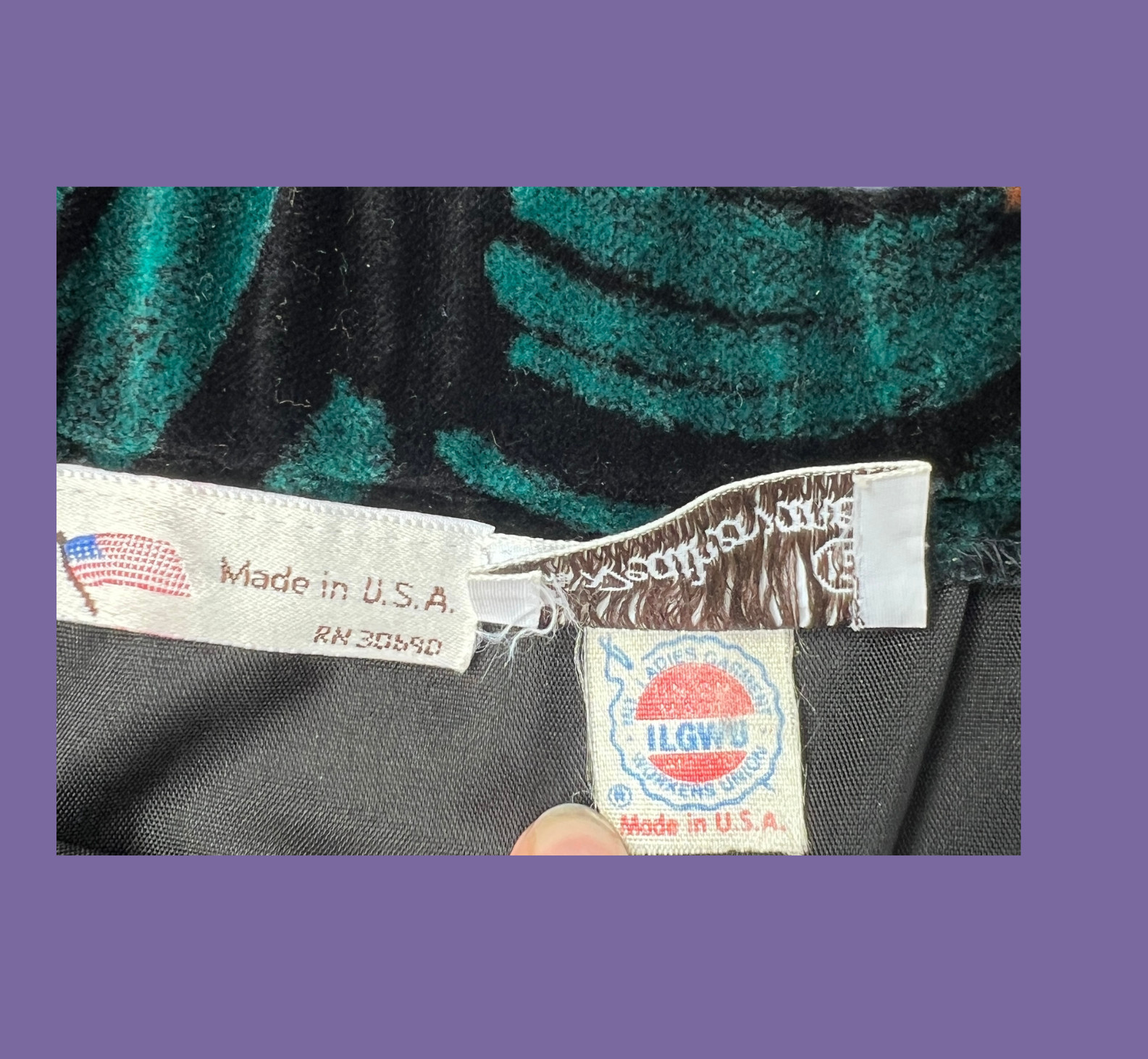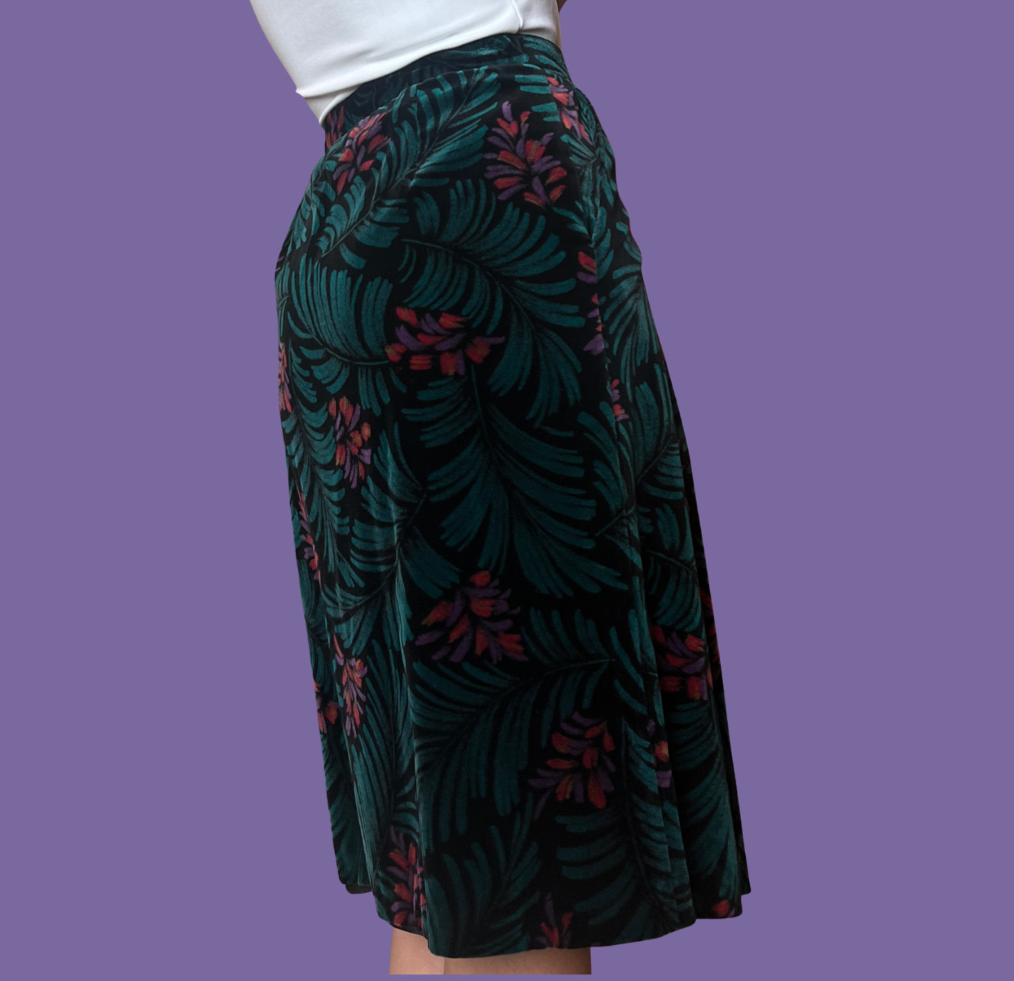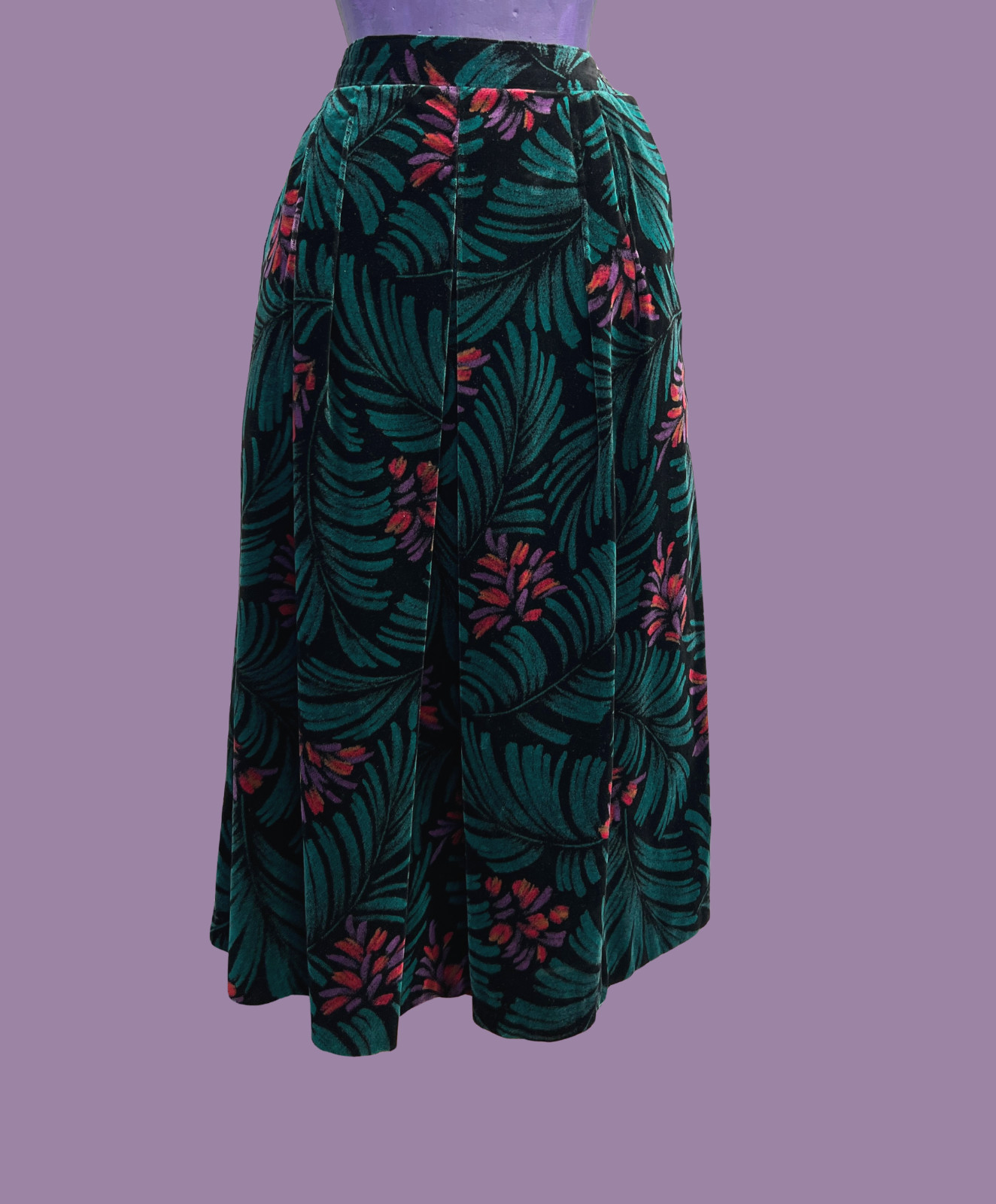VTG 1980s Union Made Dark Floral Long Velvet Skirt Whimsigoth Tropical Goth 12