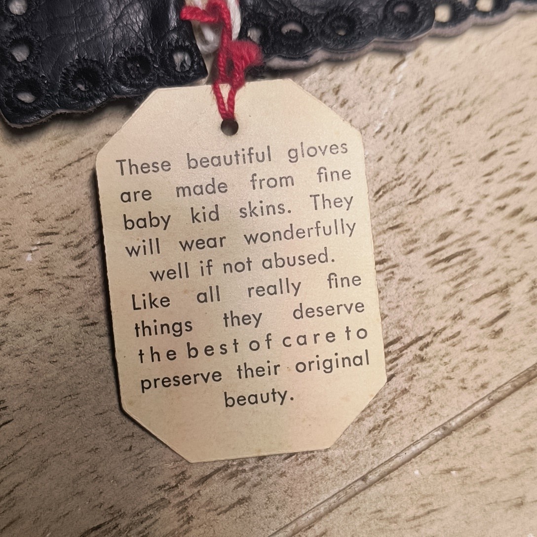 как выглядит NWT Vintage Aris Imported Black Kid Leather Gloves Size 6.5 Eyelet Wrist Detail фото