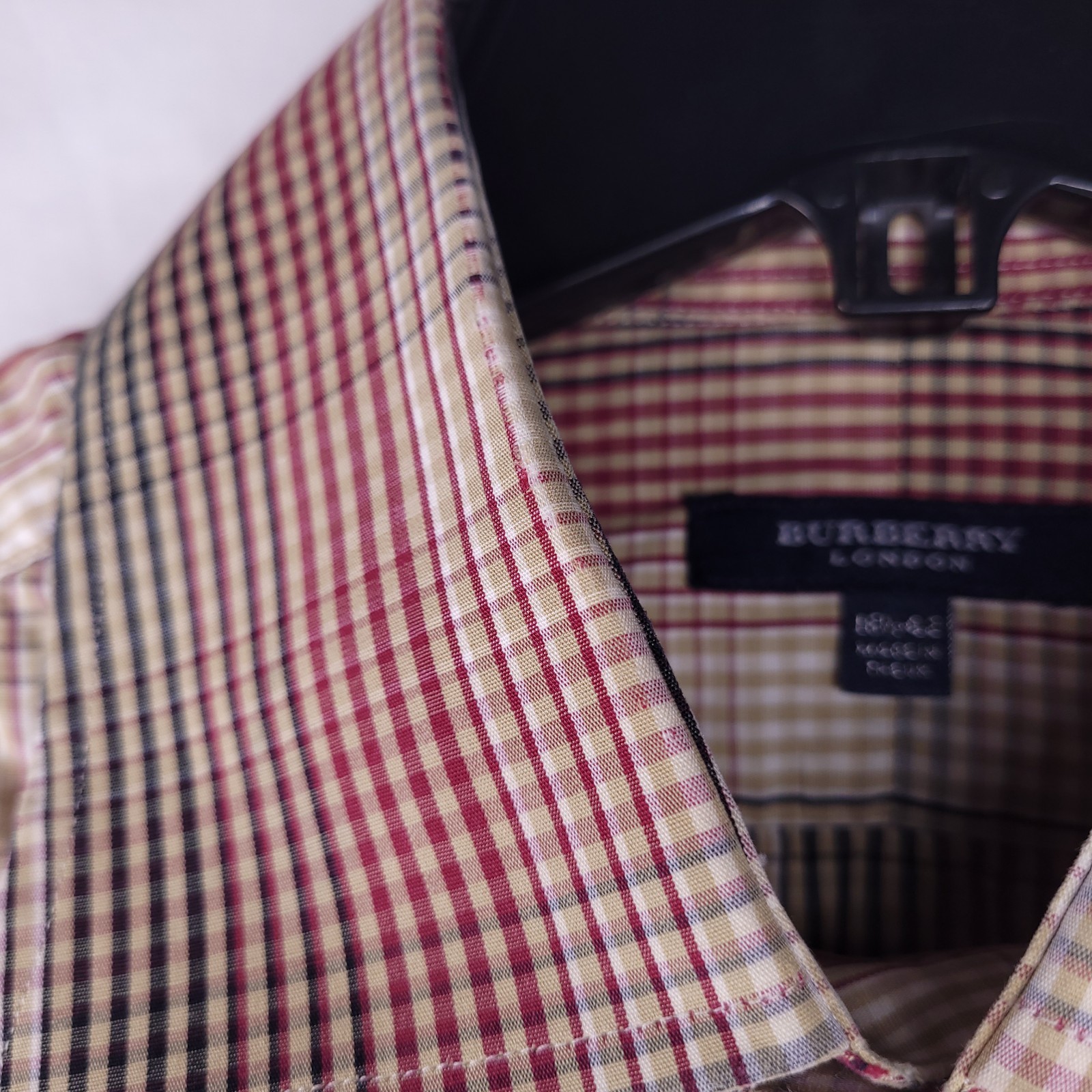 как выглядит Burberry London Dress Shirt Mens 16.5 Plaid Red, Brown Cotton фото