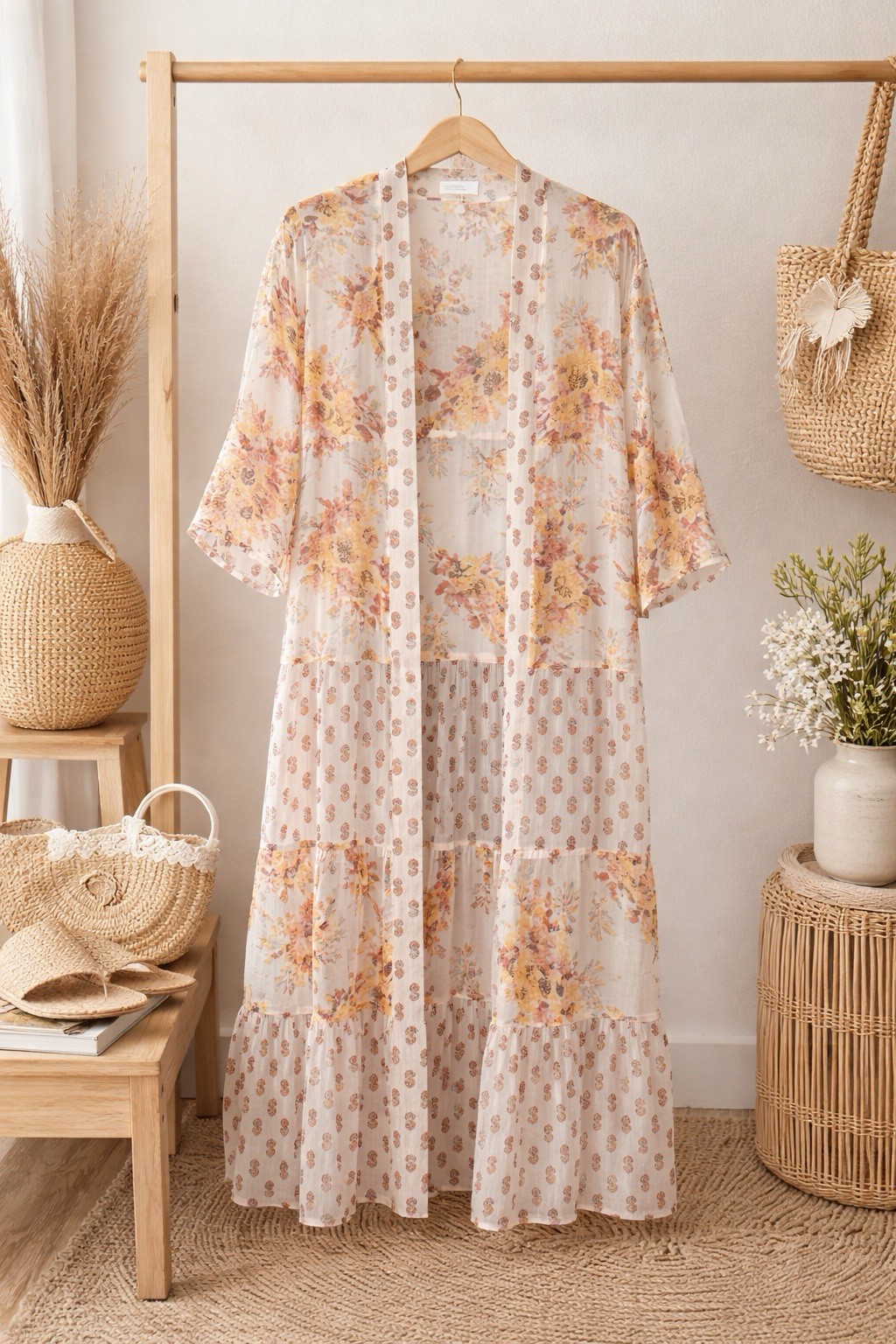 LC Lauren Conrad Patchwork Floral Paisley Kimono Duster Cardigan Boho Sheer 1 Sz