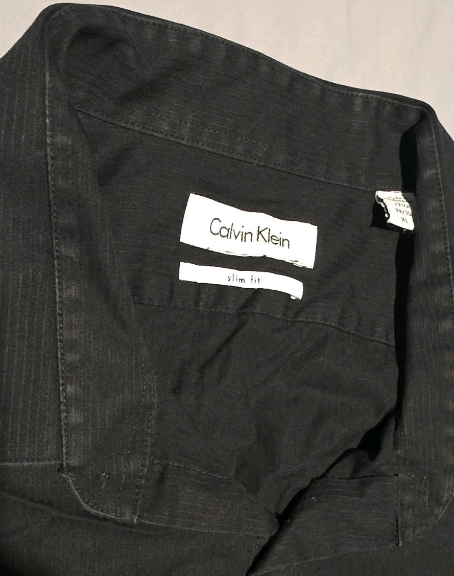 Calvin Klein Men's Slim Fit Black Dress Shirt XL 17.5 Collared Long Sleeve