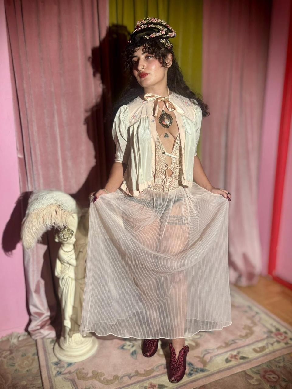 как выглядит Vintage 1940s Pink Floral Satin Bed Jacket, Size XS-S фото