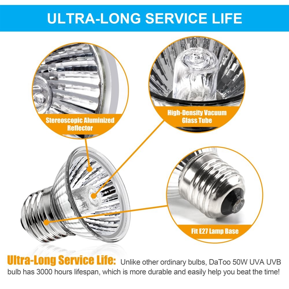 DaToo Reptile Heat Lamp Turtle Heating Light 4PCS 50W UVA UVB Bulb...