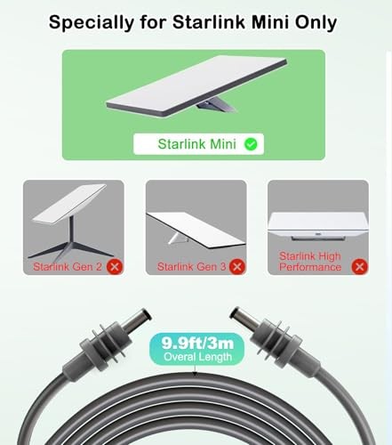 Starlink Mini Cable 18AWG Waterproof Starlink Mini DC Cable, 10FT/3M DC to DC