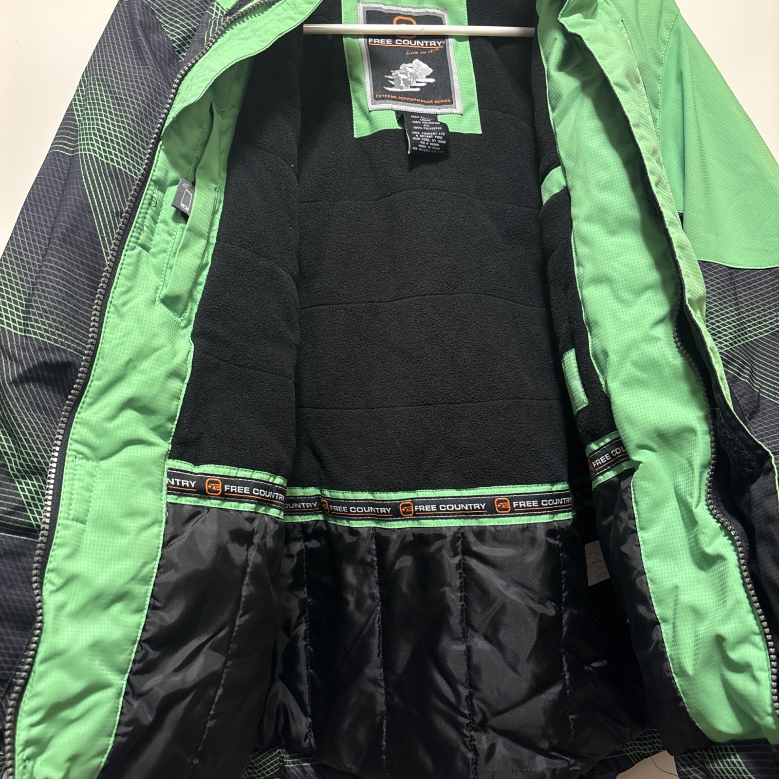 Free Country Extreme Performance Boy s Jacket Sz M 10/12 Black/Green 5 Pockets