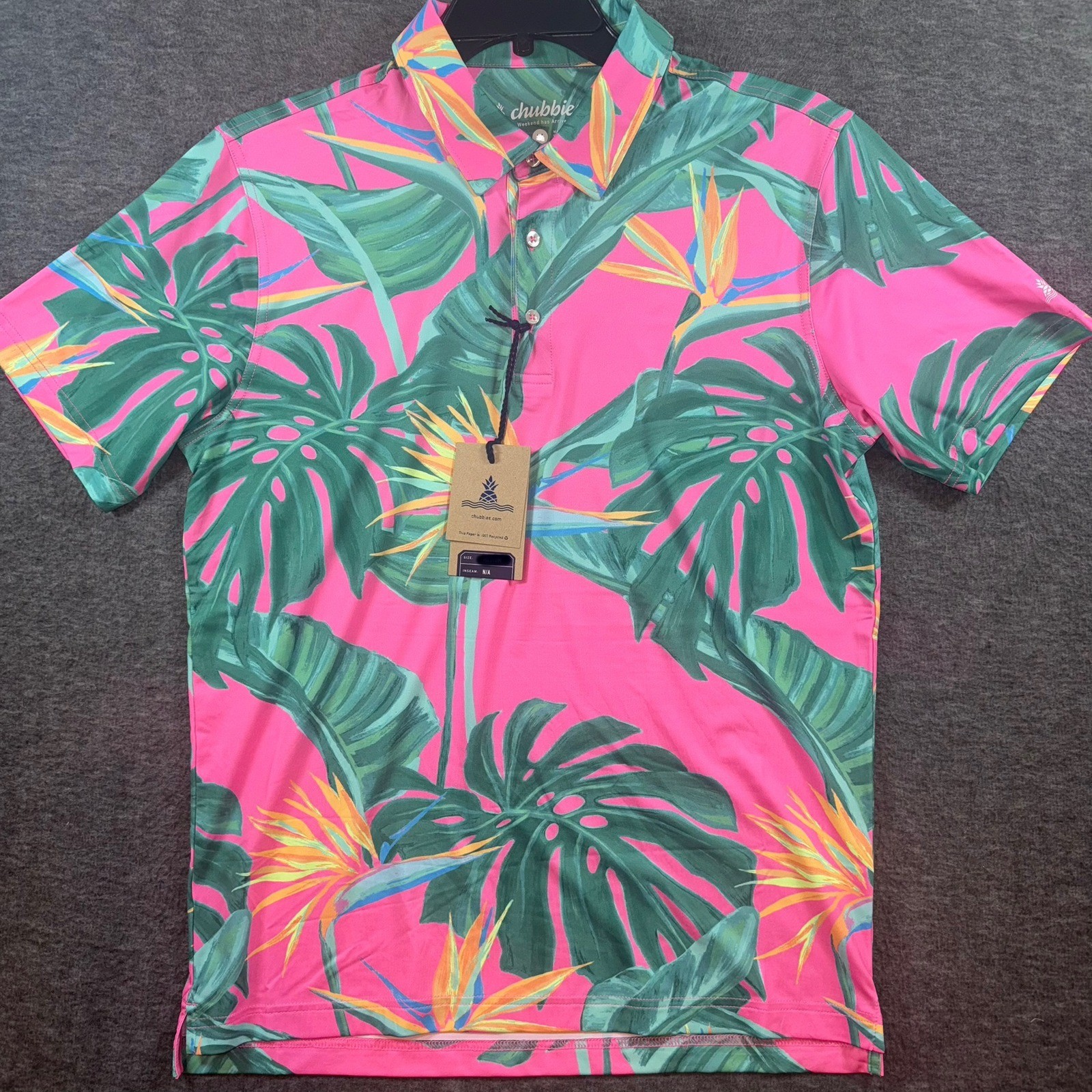 Chubbies The Birds Of Paradise Performance Polo Shirt Mens M Pink Tropical NEW