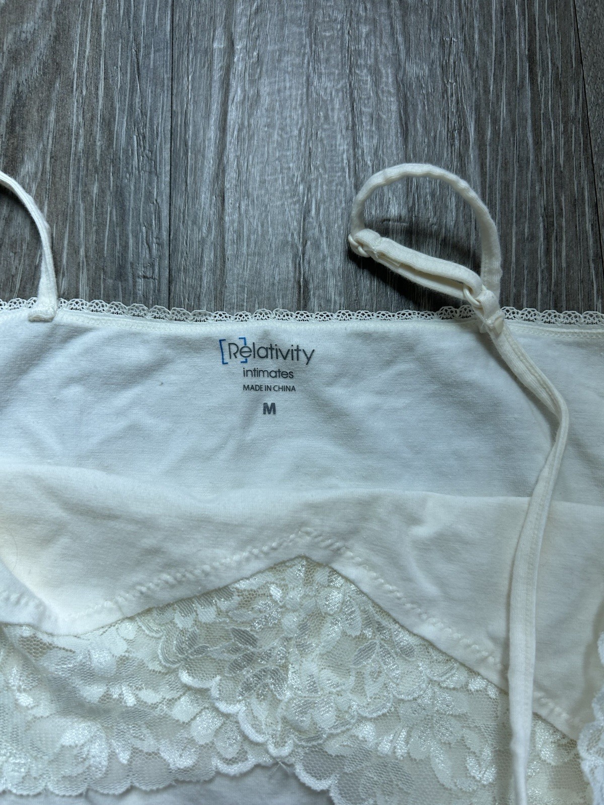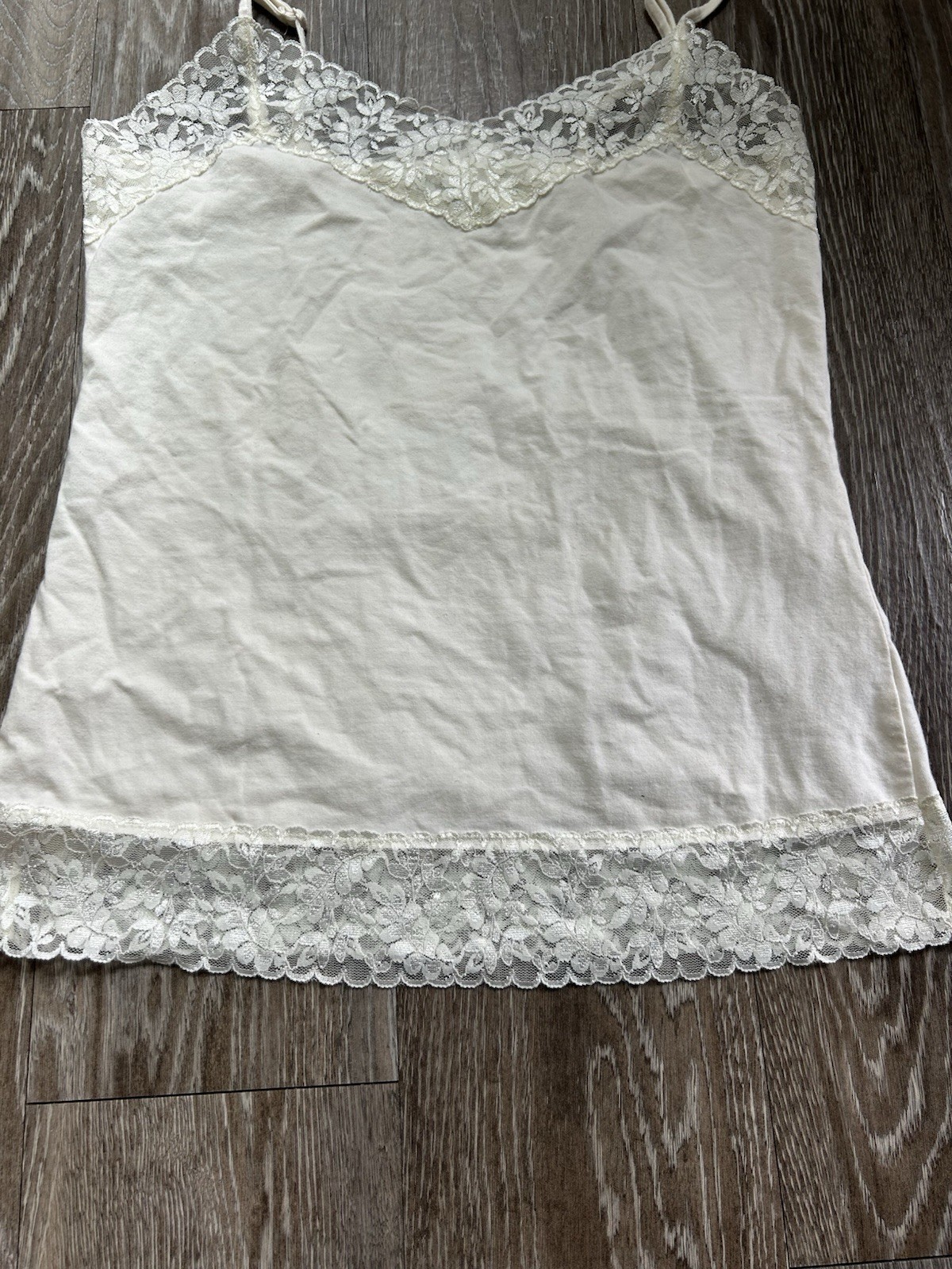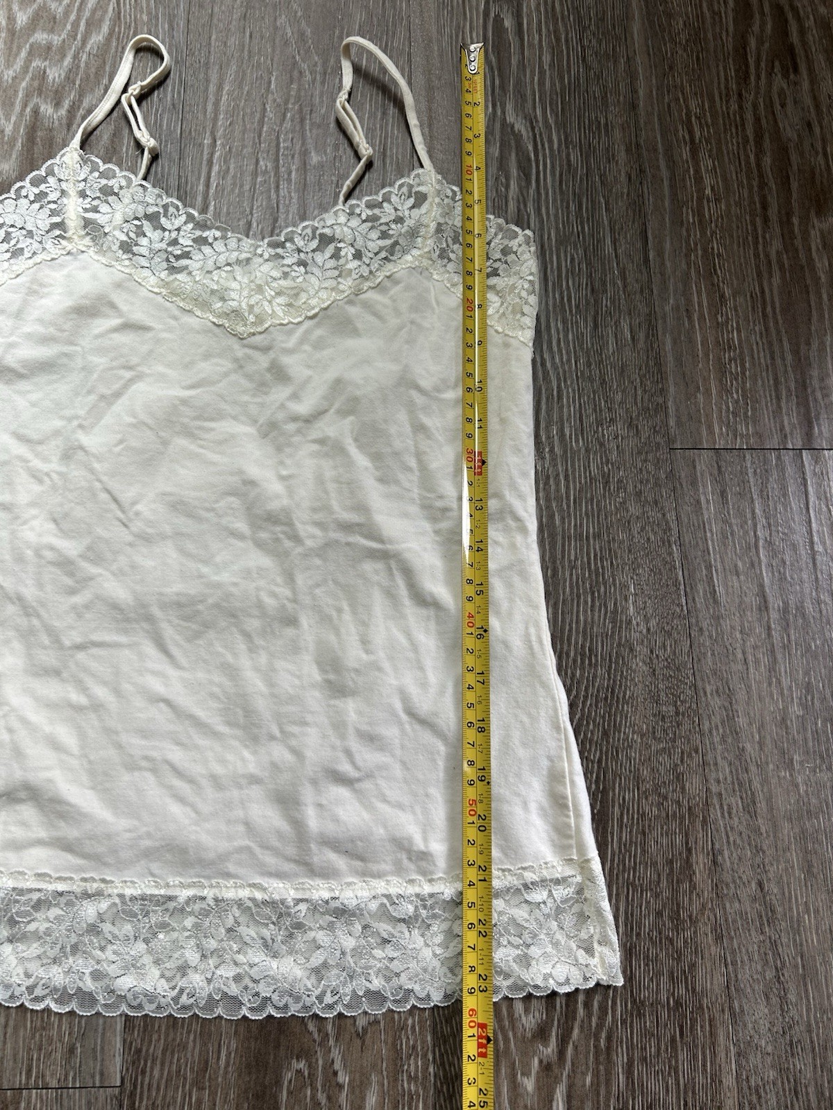 Ivory Lace Stretch V Neck Cami Tank Top Y2K Coquette Fairy Feminine 90s