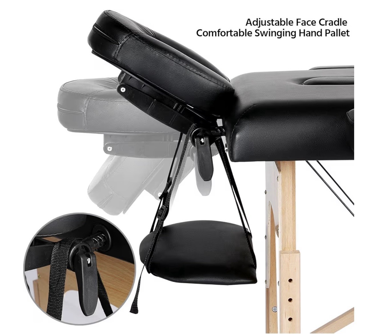 Massage Table Portable Spa Bed Foldable Adjustable 2 Fold Bag 24 Black