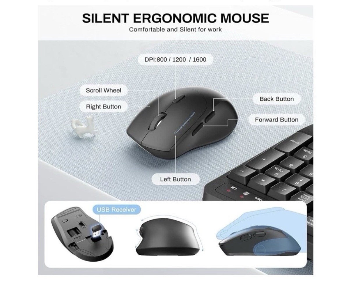как выглядит Wireless Keyboard and Mouse Combo, 2.4G Full Size Wave Keys Ergonomic Keyboard фото
