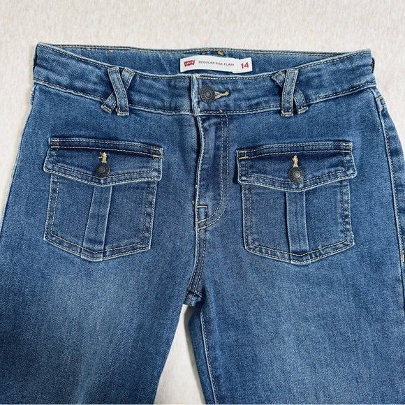 как выглядит Levis Flare Girls Size 14 US Blue Cotton Adjustable Waistband Low Rise Jeans фото