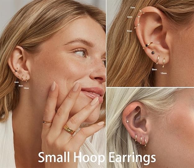 как выглядит Dainty Small Gold Hoop Earrings for Women Set: 5 Pairs Lightweight 14K Gold Mini фото