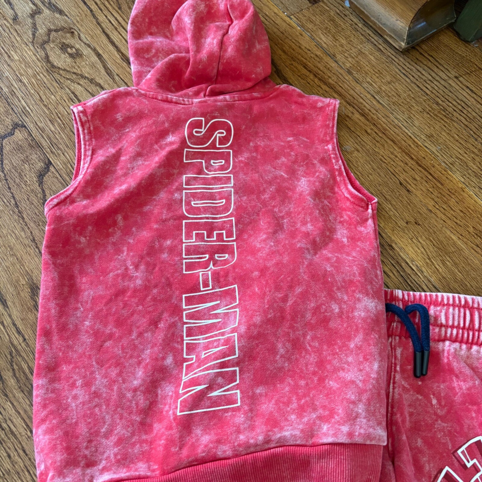 Marvel Spiderman Outfit Set size XS Sleeveless Hoodie Shorts Red Graphic NWOT