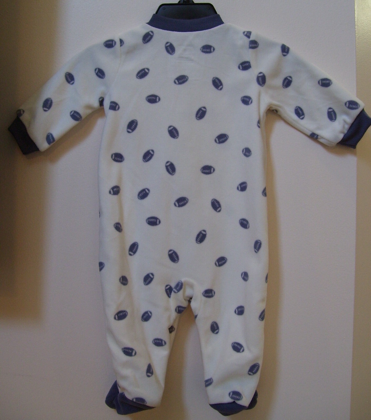 Boys Carter's White Blue Football Fleece Footed Blanket Sleeper Sz 3M
