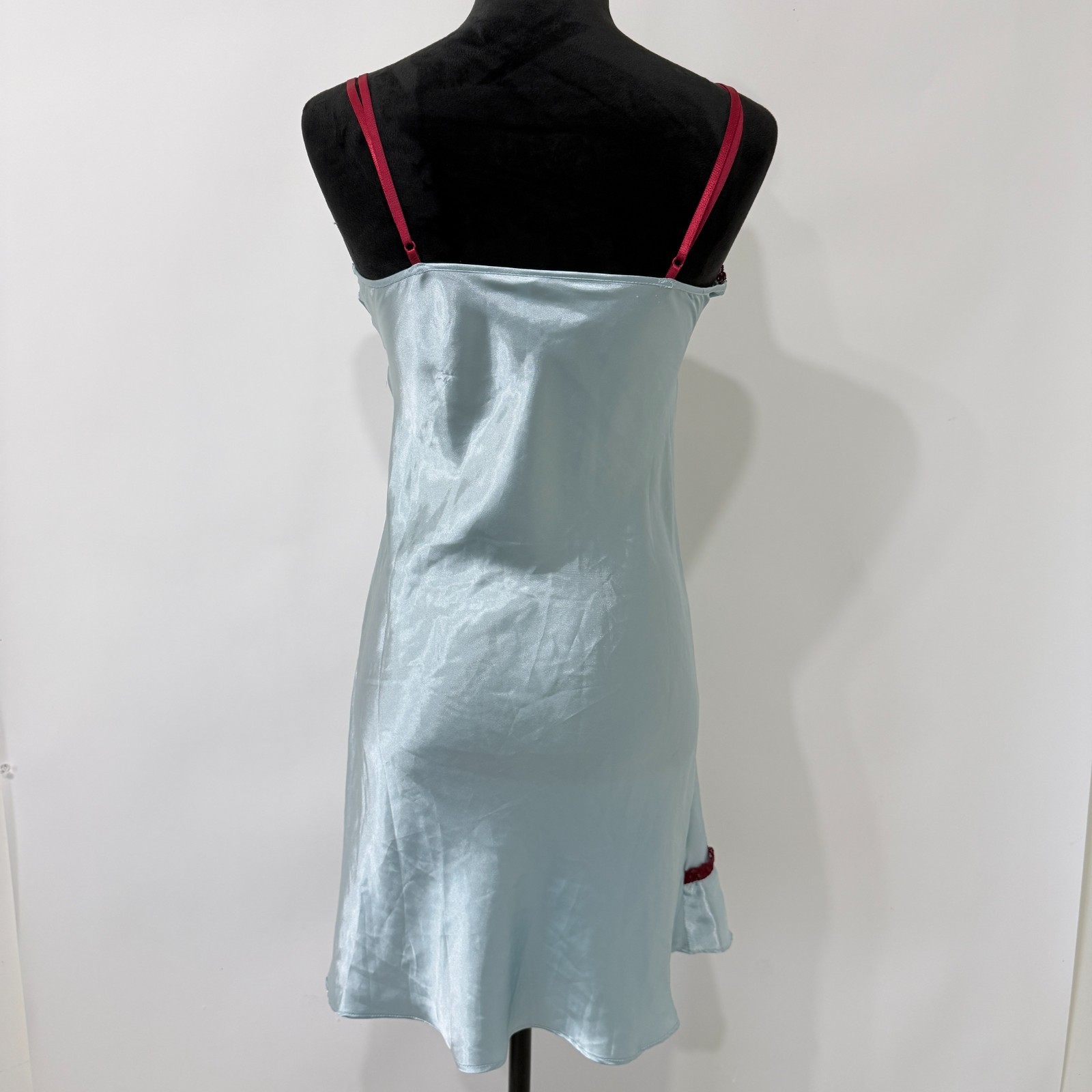 как выглядит Dream Girl Satin Babydoll Slip Dress M Blue Coquette Fairy Embroidered Ribbons фото