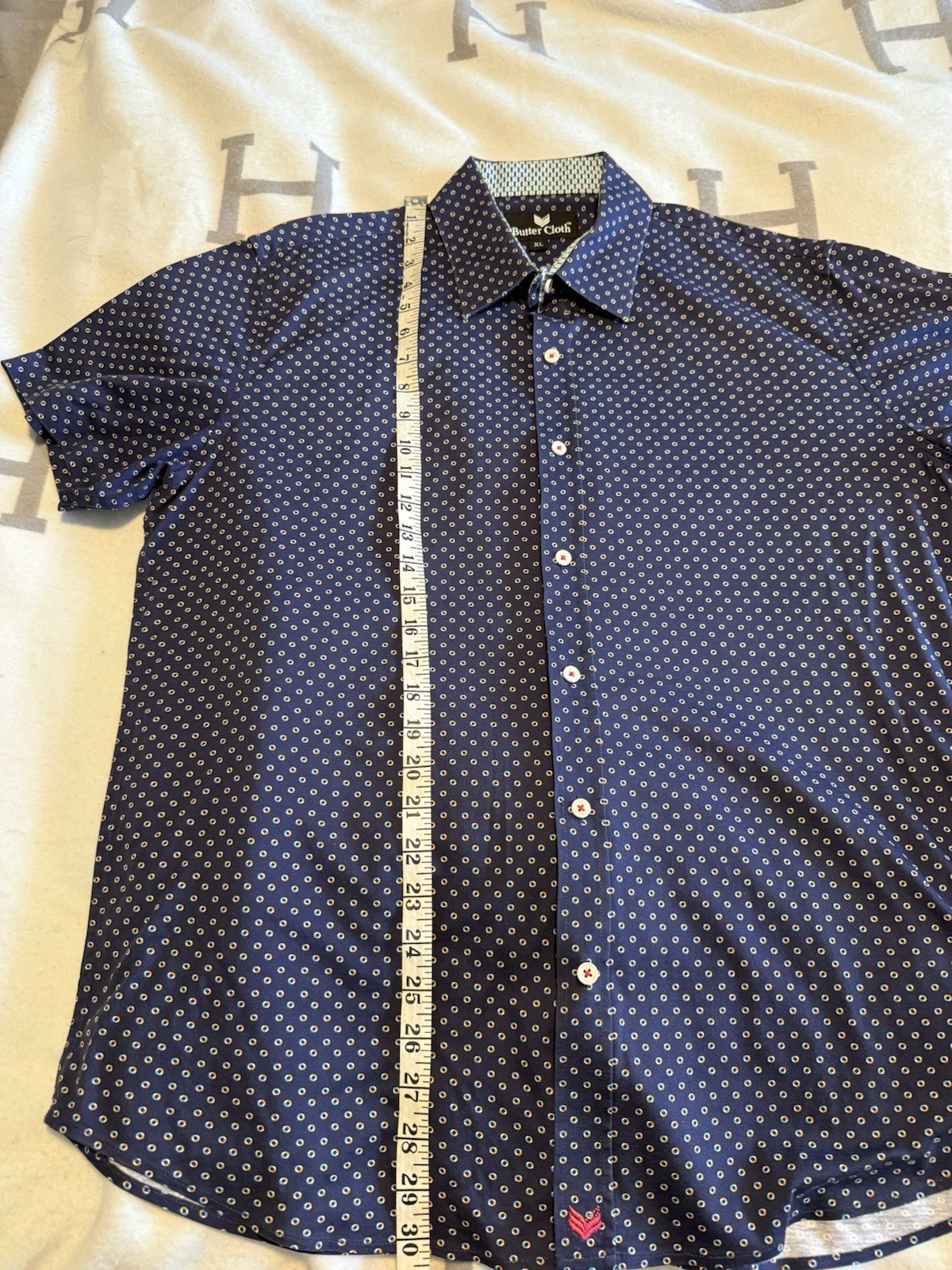 как выглядит Mens Short Sleeve XL Buttercloth Navy Blue Button Up Shirt фото