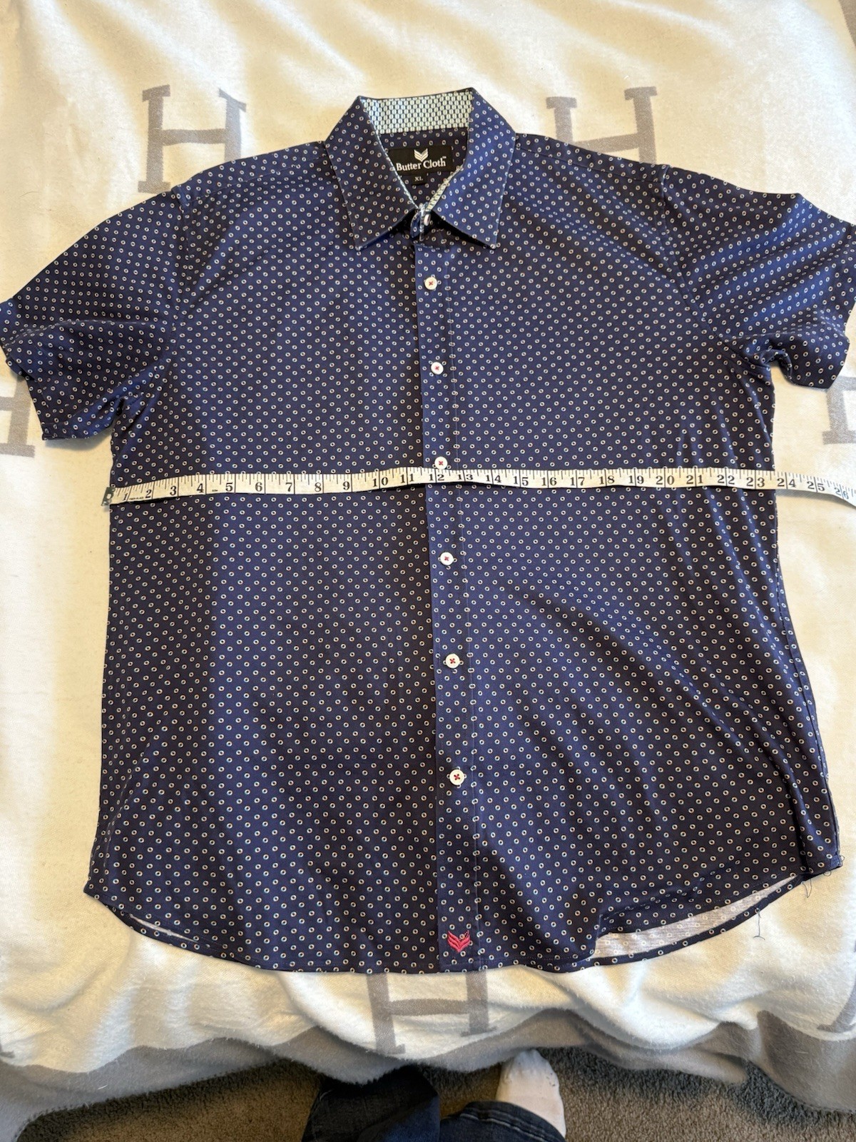 Men's Short Sleeve XL Buttercloth Navy Blue Button Up Shirt