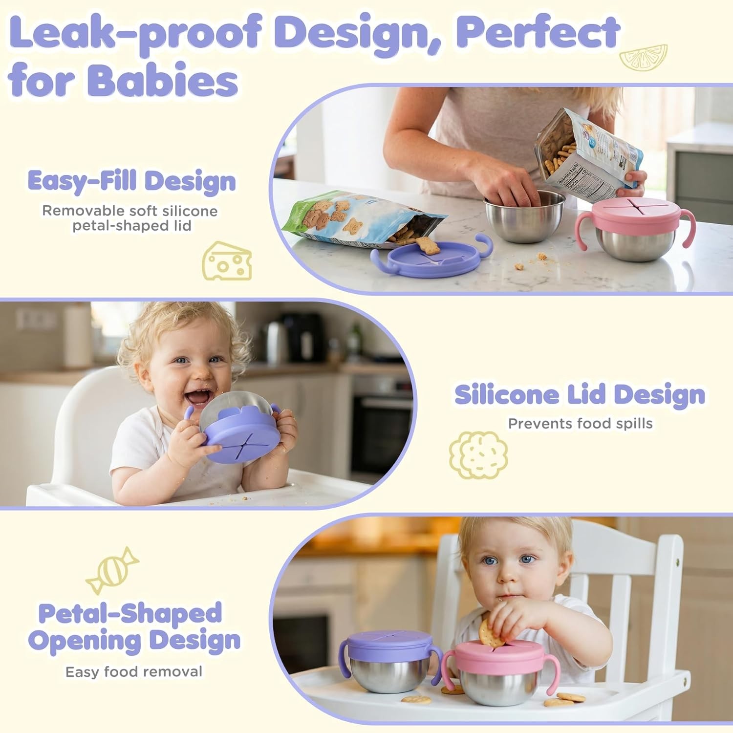 Dishwasher Safe Toddler Snack Cups - Perfect for On-the-Go Baby Shower Gifts
