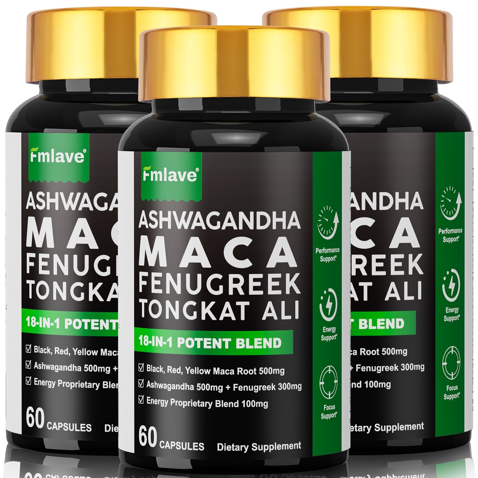 Ingredients: Ashwagandha, Black Maca, Black Pepper (Piper nigrum), Fenugreek (Trigonella foenum-graecum), Ginseng, Maca, Tongkat Ali (Eurycoma longifolia)