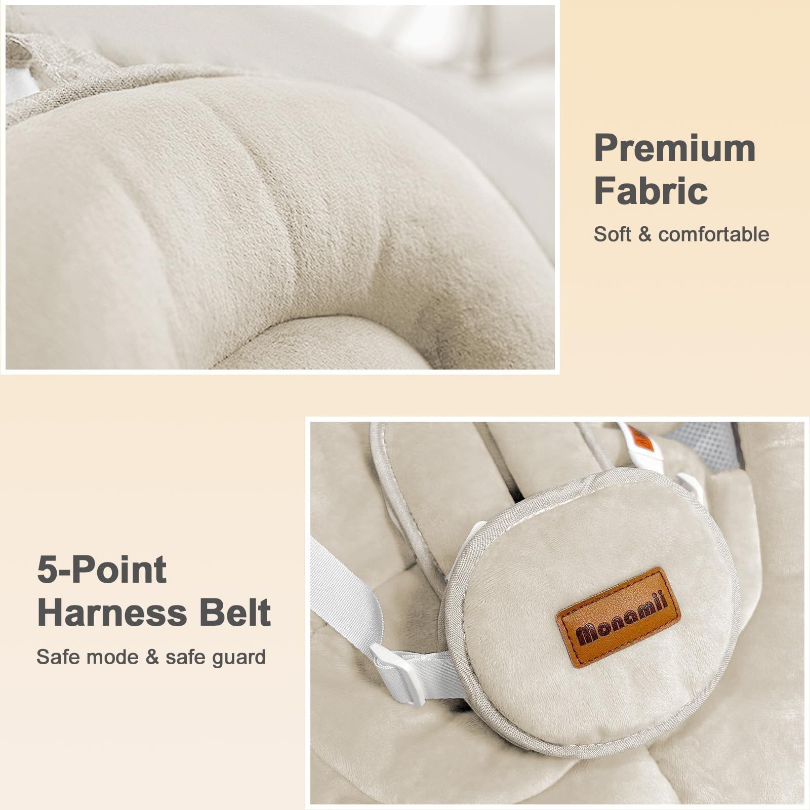 Monamii Electric Baby/Infant Swing with 5 Speeds, 10 lullabies - White/Beige
