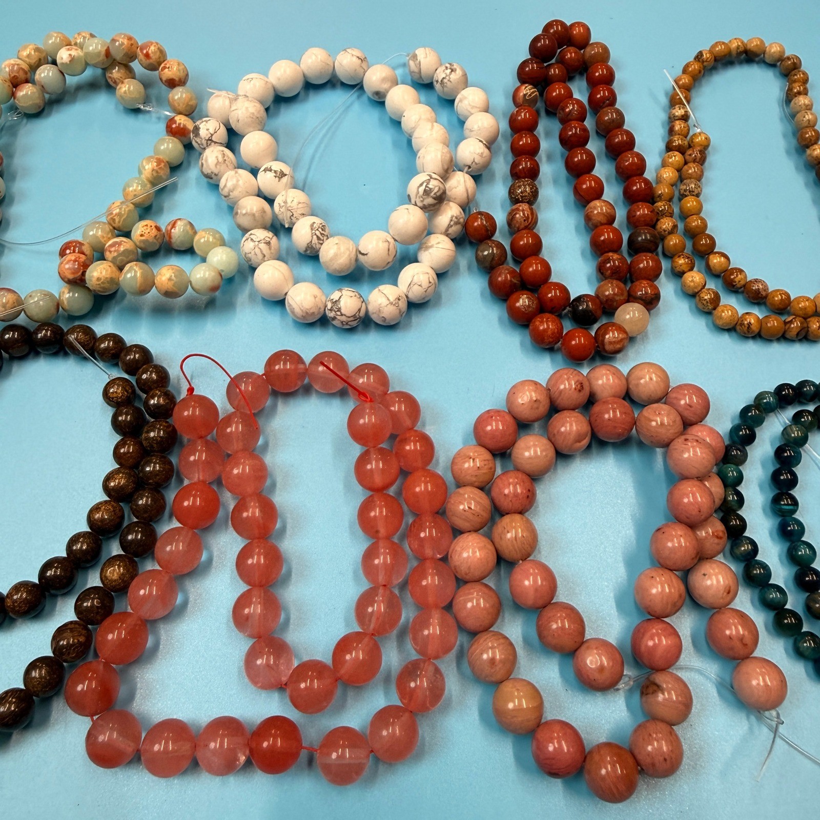 Set of 10 Natural Gemstone Round Beads Strands 15 Sizes 6,8,10 mm 14oz B14