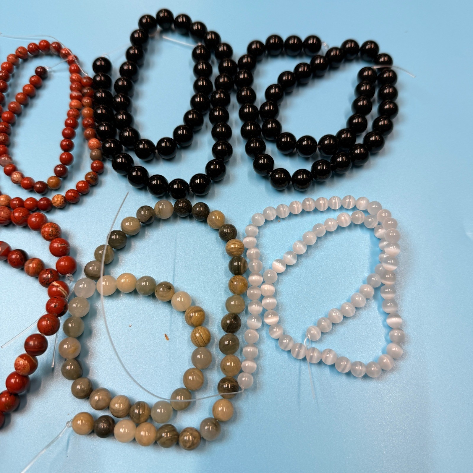 как выглядит Set of 10 Natural Gemstone Round Beads Strands 15" Sizes 6,8,10 mm 14oz B18 фото