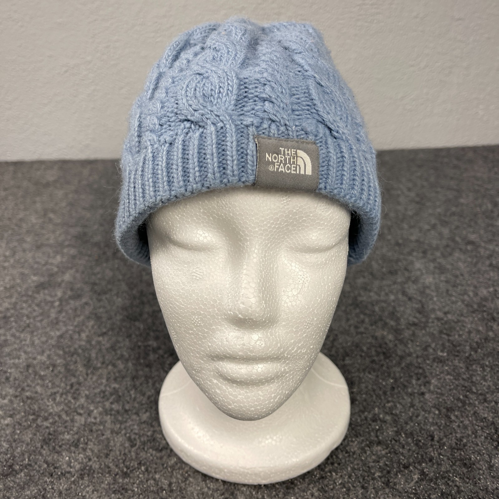 The North Face Cable Knit Beanie Womens Hat Blue Wool Blend One Size Winter