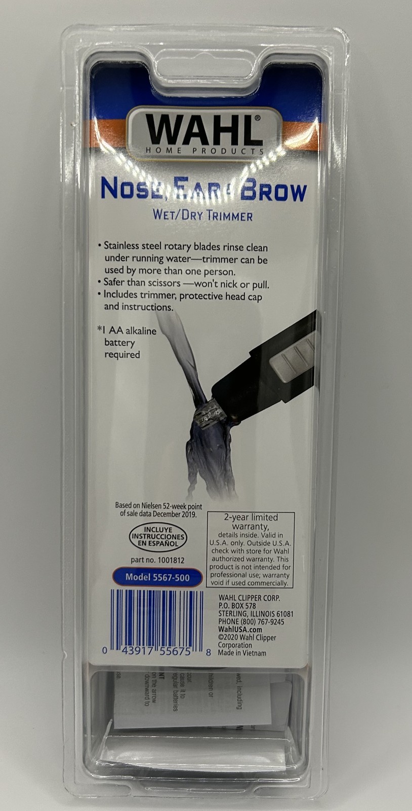 Wahl Ear Nose Brow Wet Dry Trimmer with Stainless Steel Blades Model 5567-500