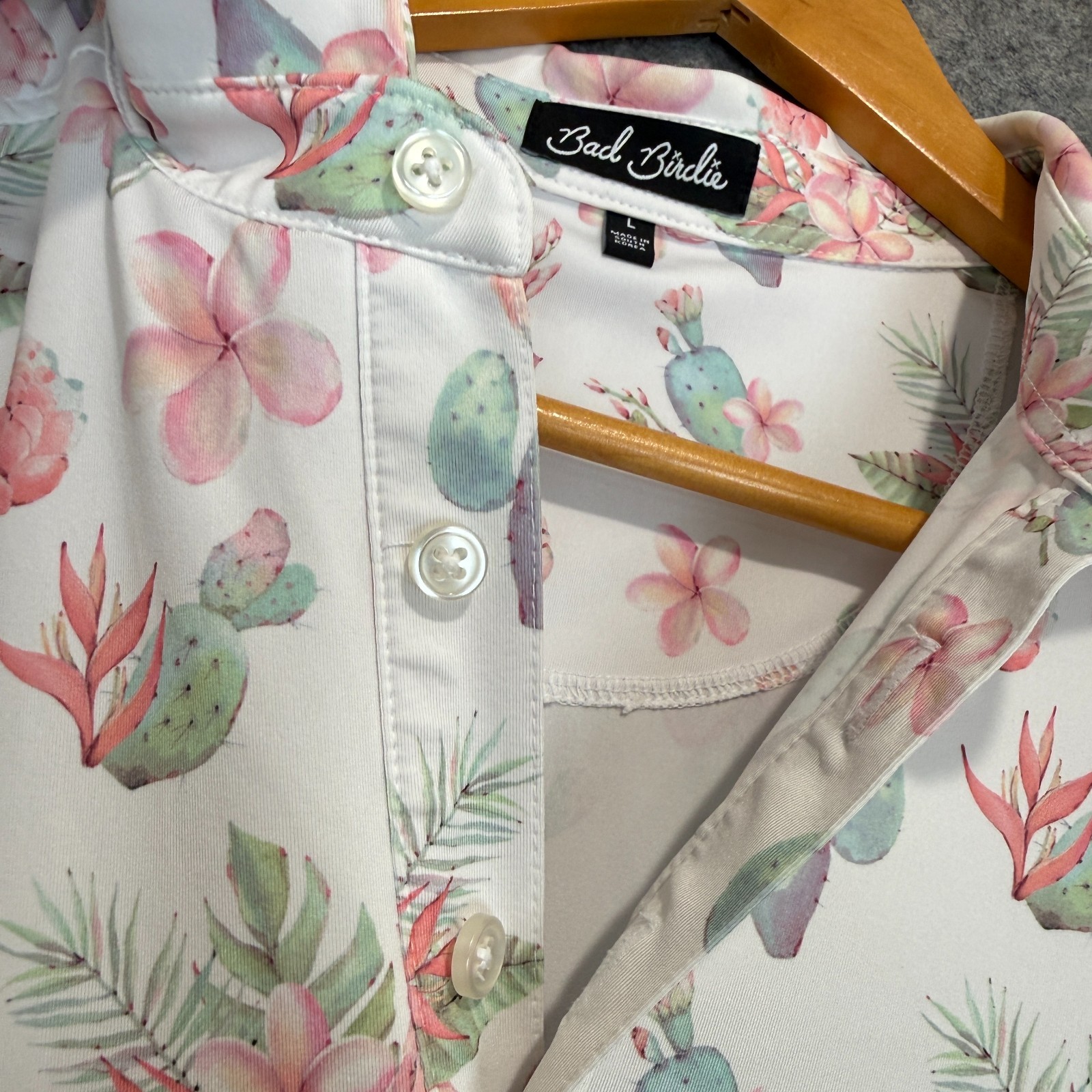 Bad Birdie Cactus Floral Golf Polo Shirt Mens Large Performance Summer Outdoor