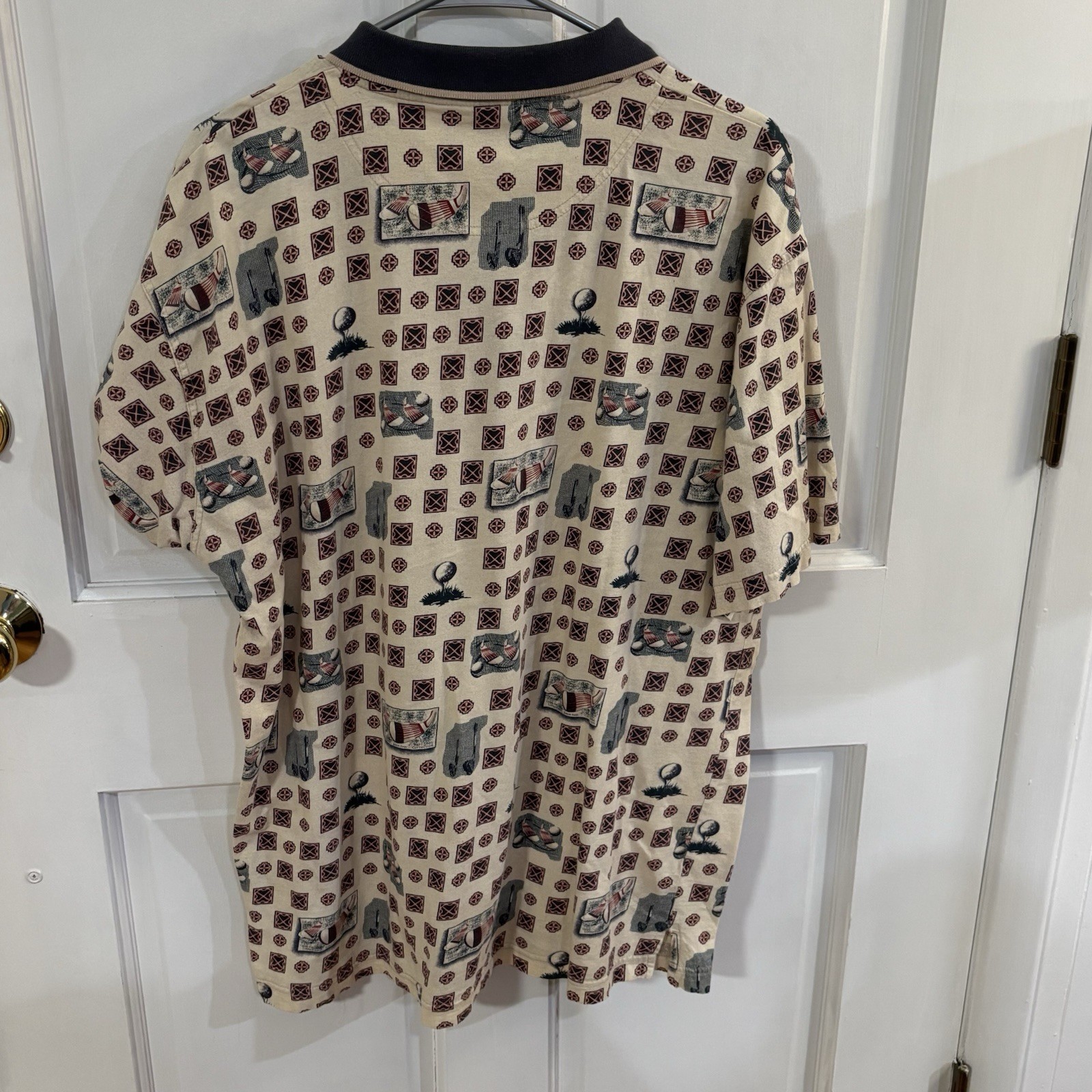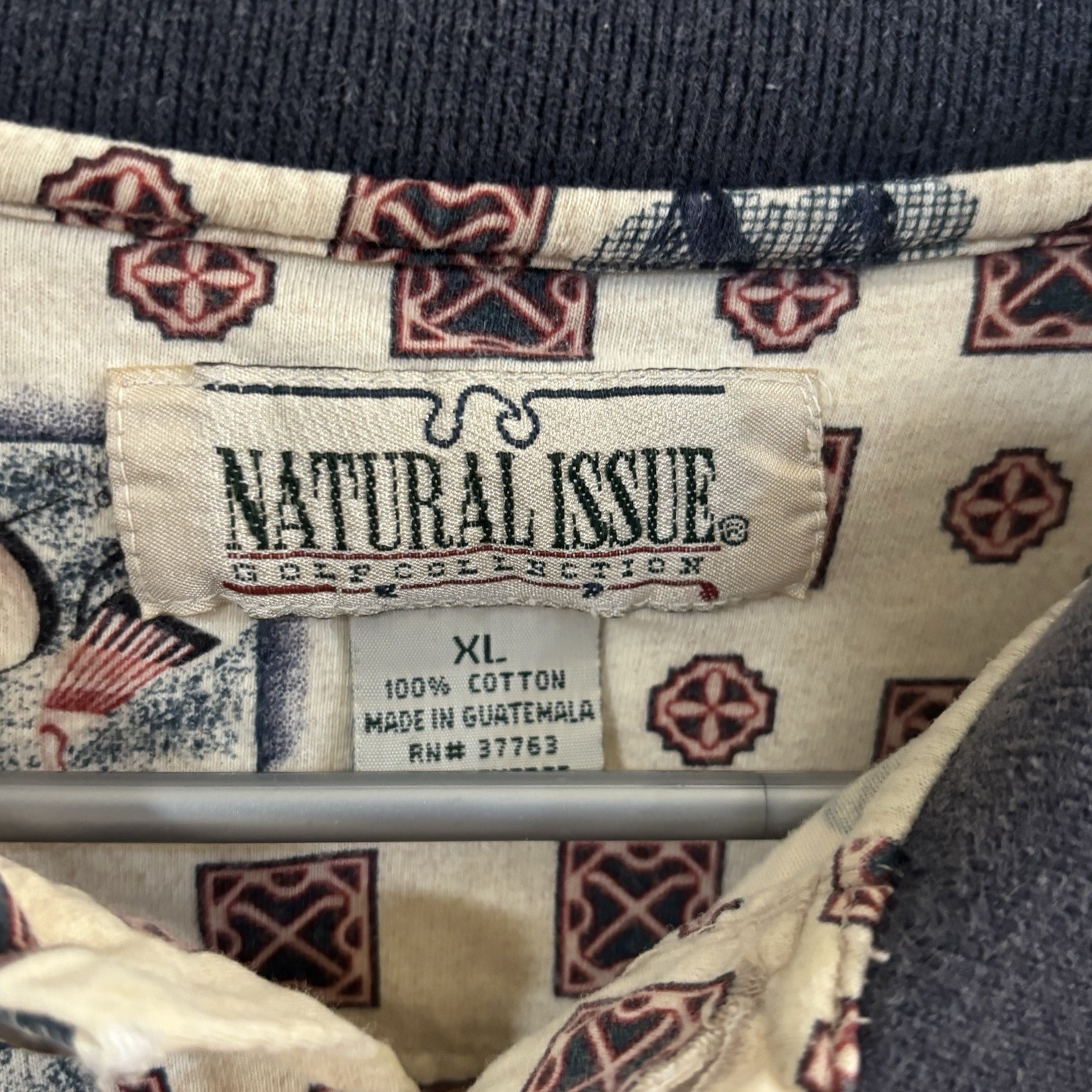 dadcore 90s novelty print Gold Polo Natural Issue XL