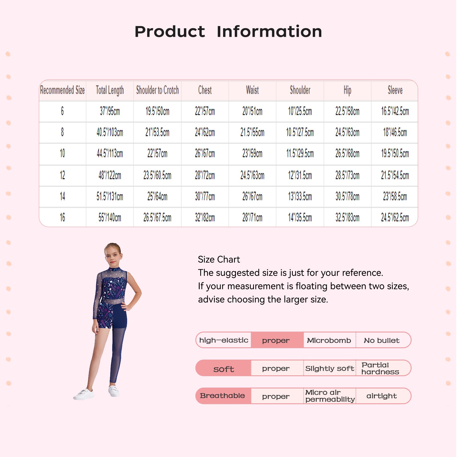 как выглядит Kids Girls Leotard Dance Costume Mesh Bodysuit Patchwork Rhinestones Training фото