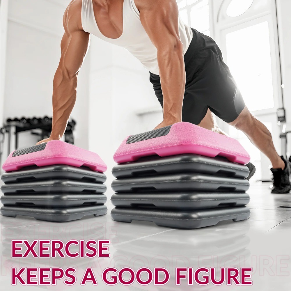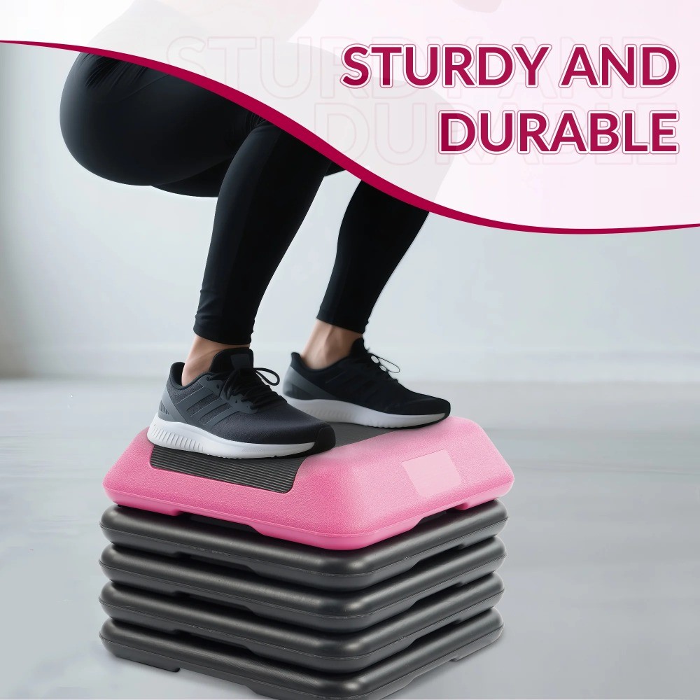 Adjustable Aerobic Step Platform with 4 Risers, Non-Slip Stepper 16, 28, 43