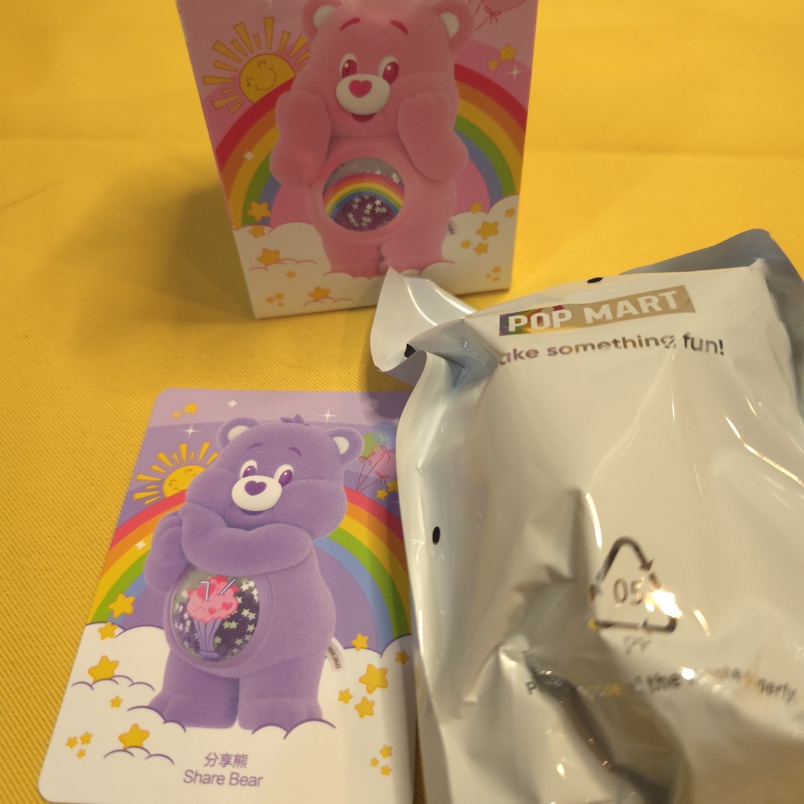 POP MART Care Bears Colorful Hugs Series Share Bear Vinyl Figure Blind Box open