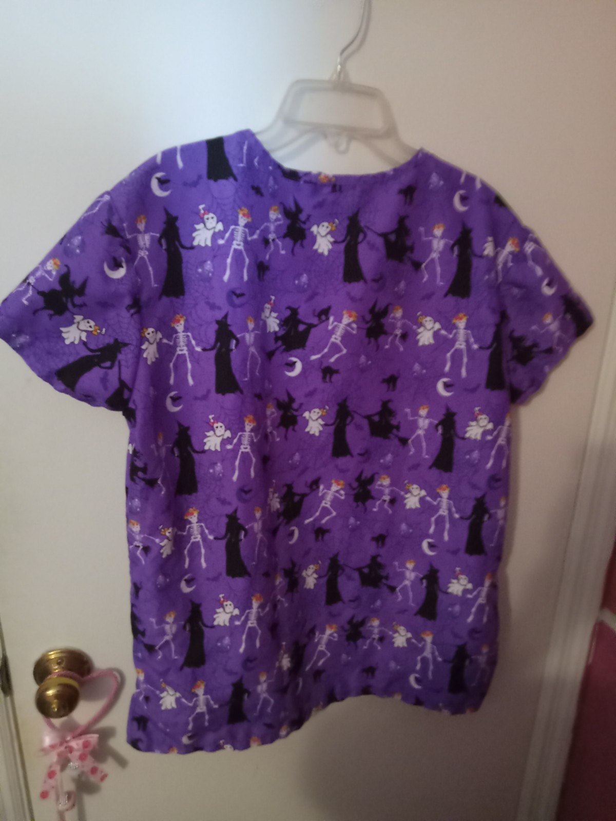 как выглядит Womens Size M Serene Uniforms Halloween Spooky Ghost Skeleton Witch Scrub Top фото