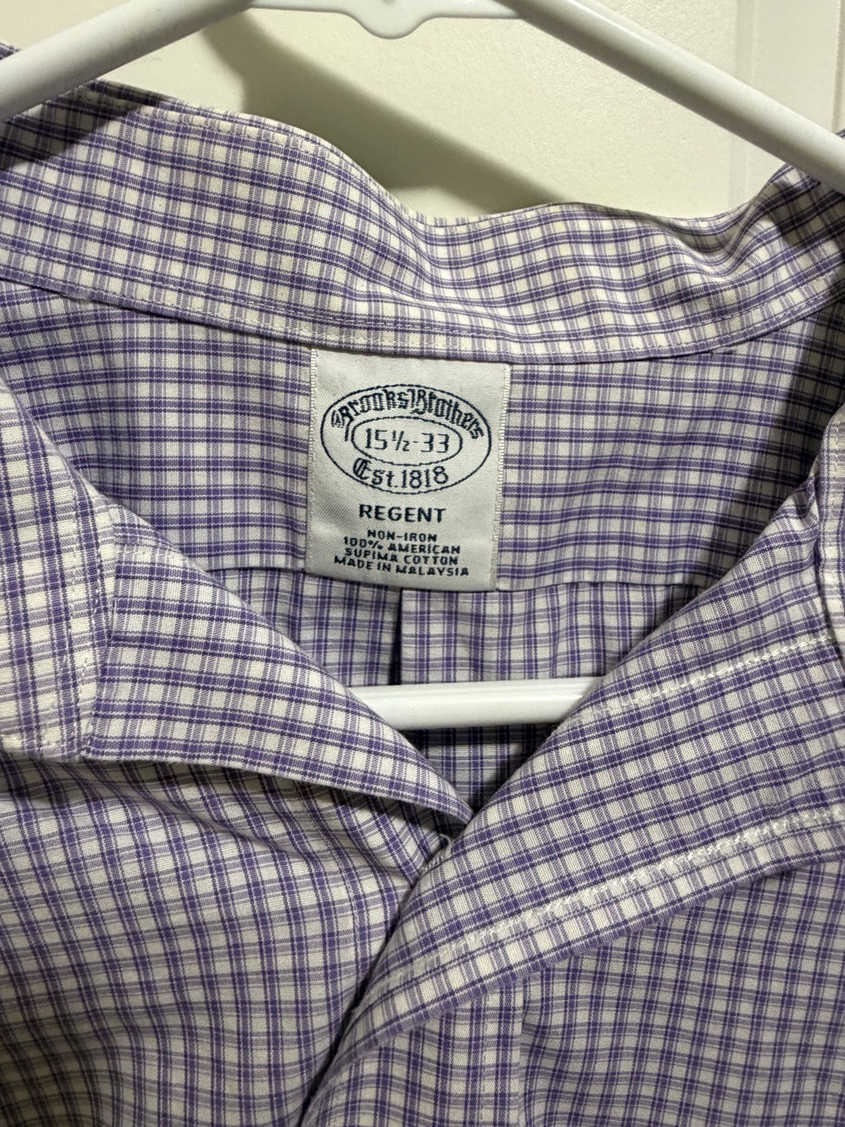 Brooks Brothers Regent Non-Iron Dress Shirt 15.5-33 Purple Check Cotton